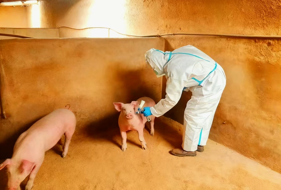 精心组织,“一对一”服务提质增效。坚持“预防为主”方针,创新推行“一对一”上门接种服务模式,镇级防疫员队伍深入各村养殖户,严格按照“精准防疫、应免尽免”原则,根据畜禽日龄、体重及科学免疫程序,量身定制接种方案,精准实施免疫注射,确保每一针疫苗安全有效,从源头阻断疫病传播链条。