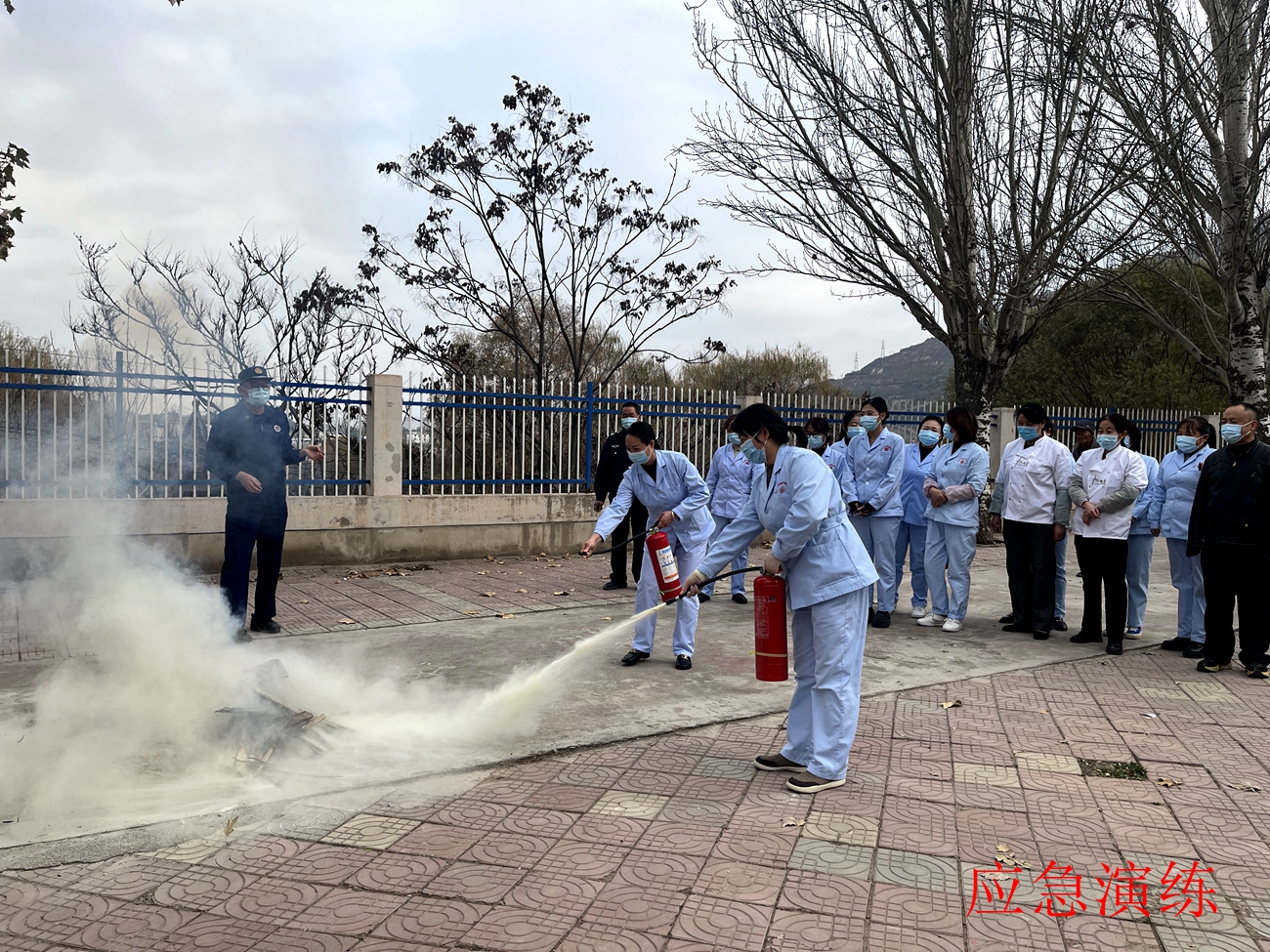 随后,在大队宣传人员的指导下,开展了消防应急演练。演练假设养老院某区域发生火情,警报声拉响。工作人员迅速响应,第一时间启动应急预案,按照预定的疏散路线,有条不紊地组织老人沿安全通道进行有序撤离。此外,参训人员还亲手操作灭火器,认真学习并熟练掌握“提、拔、握、压”的正确使用方法,切实做到在关键时刻不仅“会用”,更能“敢用”,有效提升了应急处置能力。