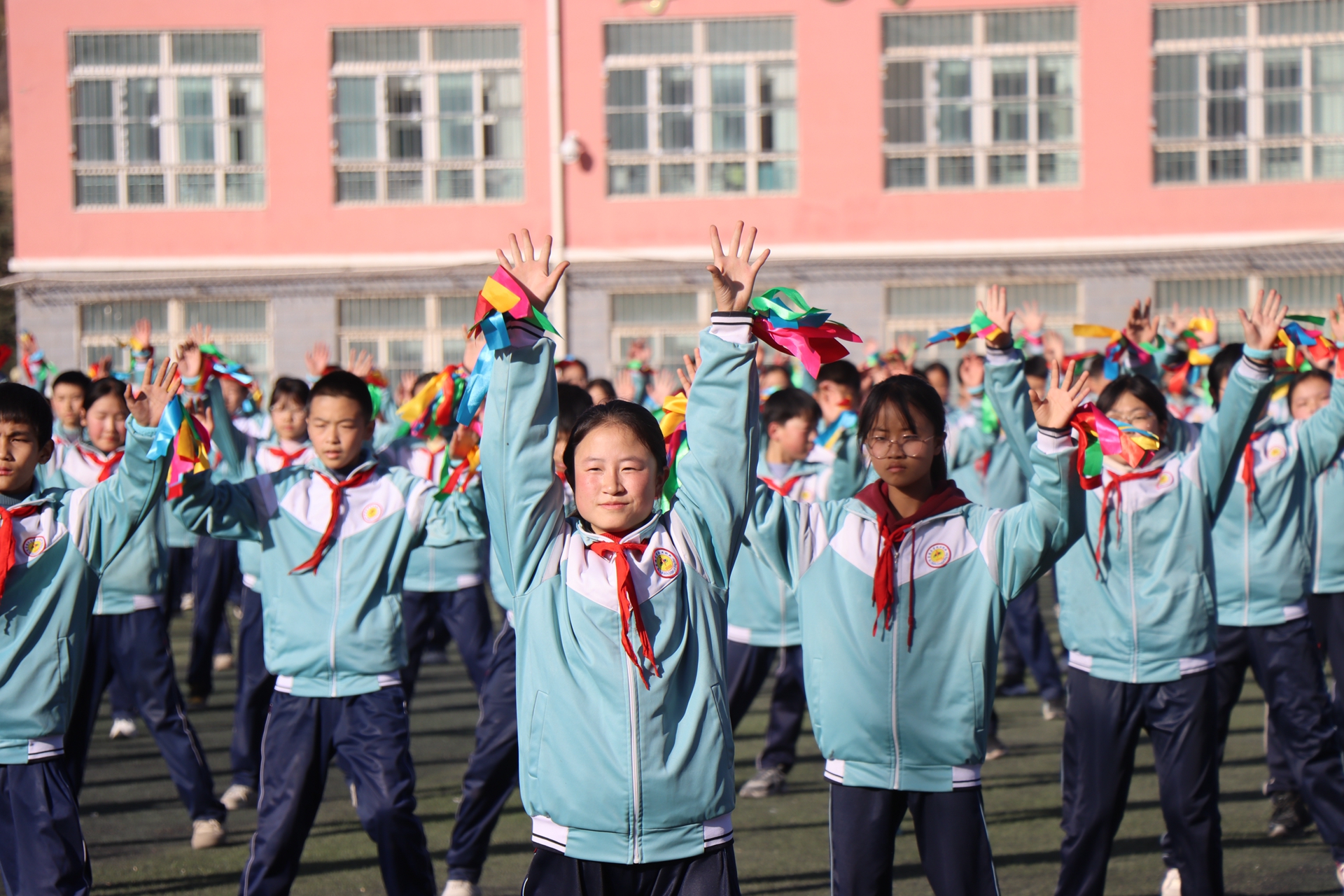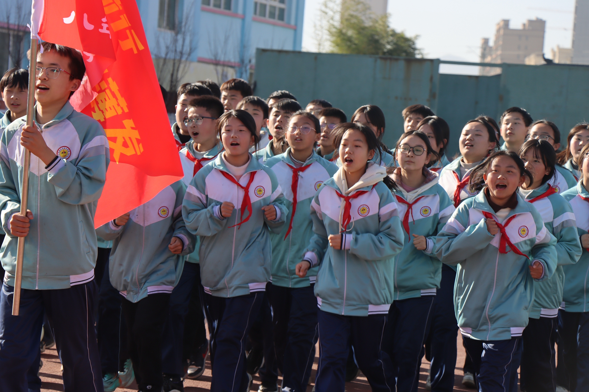 随着轻快的旋律响起,各班级队列迈着整齐的步伐开启花样跑操。学生们时而变换成整齐的方阵,时而组成灵动的图案,步伐铿锵有力,口号响彻云霄。跑操结束后,全体学生迅速列队,在音乐的指引下做起健身操。伸展、弯腰、跳跃、旋转,一系列动作规范整齐,充分展现了五中学子朝气蓬勃的精神面貌。