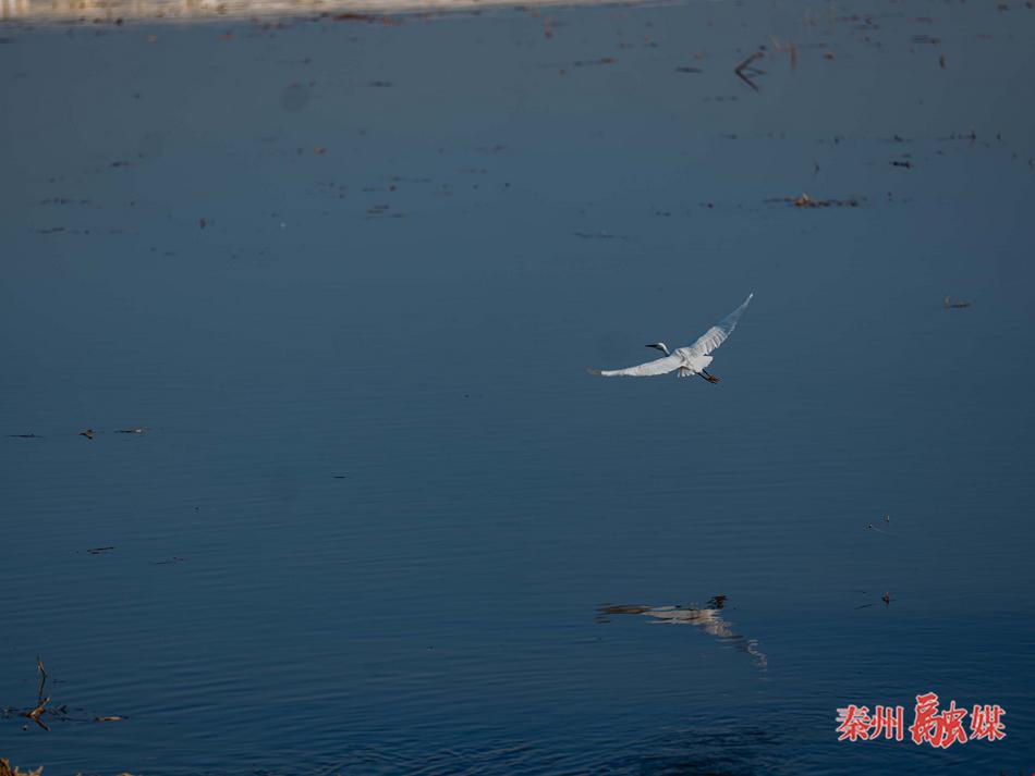 暖阳下的藉河,水波荡漾,成群候鸟或在水中悠然游弋,或在浅滩梳理羽翼,或盘旋天际划出优美弧线。洁白的白鹭踮着修长细腿,低头捕食时溅起朵朵水花;国家二级保护动物灰鹤昂首阔步,神情悠然自得;机灵的绿头鸭结伴穿梭,水面泛起层层涟漪。偶尔有摄影爱好者举着“长枪短炮”,在亲水平台悄悄记录下这灵动瞬间,生怕惊扰这些冬日“来客”。