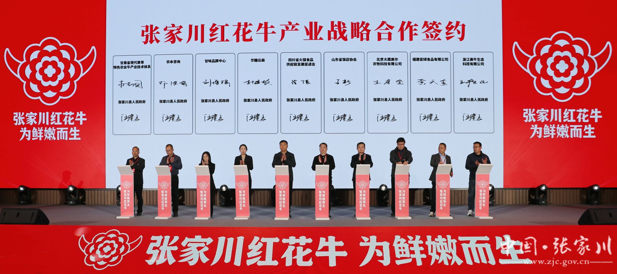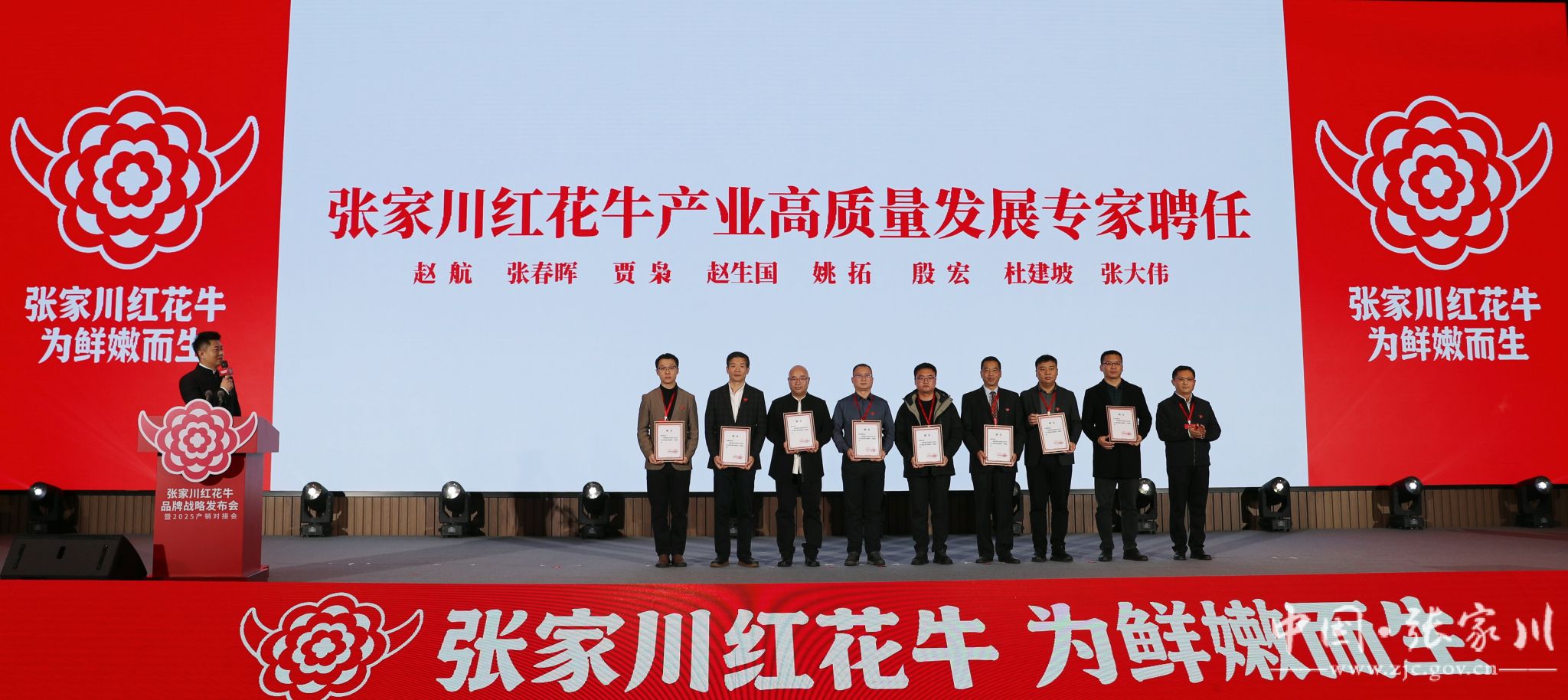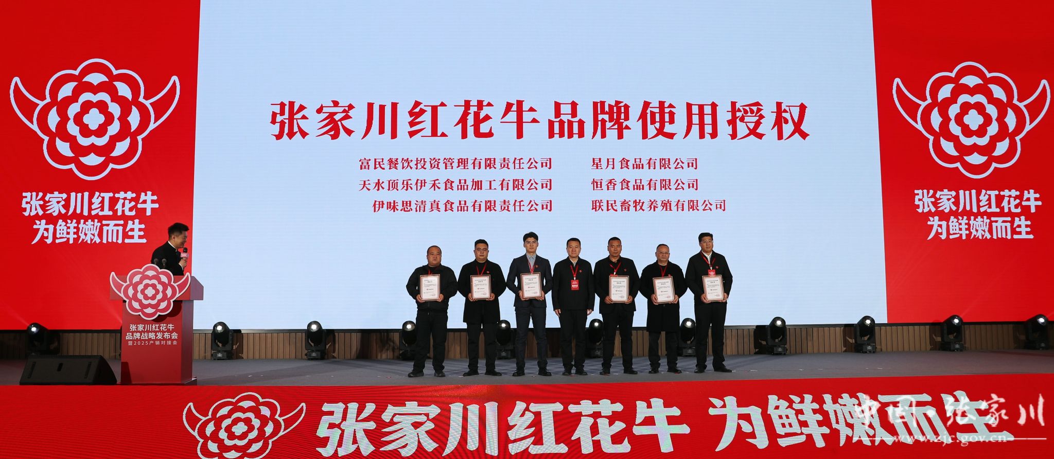 品牌包装展示、品牌战略解读、授牌、协作签约、颁发聘书。发布会现场,一串串闪亮的数字全方位展示了张家川红花牛从育种繁育、标准化养殖到屠宰加工、冷链配送的全链条保障体系,每一个环节和品牌设计理念更是阐释着“国家农产品地理标志产品”这一金字招牌的权威认证,传递出了生态、优质、安全的品牌理念,增进了消费者对张家川红花牛品牌的了解与信任。
