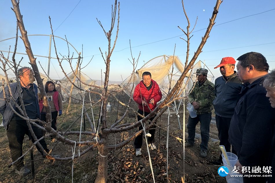 新天水讯 据麦积区融媒体中心消息 当前正值冬季果园管理关键时期,为持续推进果园管理标准化、精细化、规范化,近日,甘肃林业职业技术大学与麦积区果业发展中心的农业技术专家深入甘泉镇包沟村和马跑泉镇李家坪村,开展花牛苹果绿色高质高效生产技能提升培训,助力花牛苹果产业提质增效。
