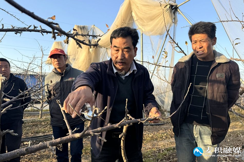 “我家种了8亩苹果、5亩樱桃,这次的培训让我学到了很多专业知识,摸清了苹果的生长特性。以前剪枝全凭老经验,往往越剪产量越低,现在跟着老师学了标准化修剪方法,哪枝该留、哪枝该剪心里明明白白,明年亩产至少能提高20%!”在甘泉镇包沟村,种植户季去拜高兴地告诉记者。培训现场,农业技术专家们手持修剪工具进行示范,一边精准操作一边细致讲解,手把手指导种植户掌握枝条取舍、剪口角度等关键修剪技巧,为越冬果树“量身塑形”。参训学员们围在专家身旁认真观摩、详细记录,并在专家指导下现场实践。