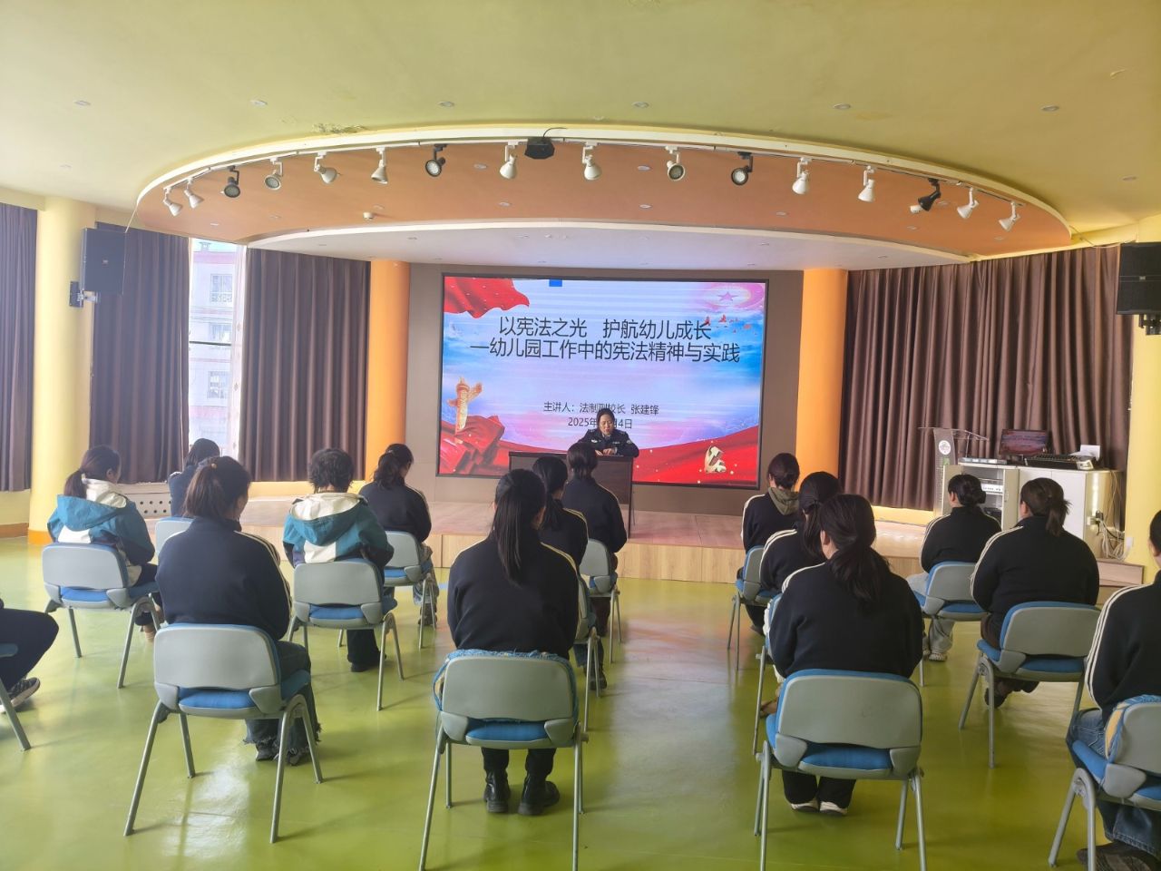 讲座中,主讲人结合清水县以务工经济为主、留守儿童较多的县域社会特点,从“宪法是国家根本法与生活总章程”“宪法精神与法治中国时代背景””宪法与教育的深度关联””宪法精神融入幼儿园日常工作的实践路径”“面对现实挑战的特殊使命”五个维度,进行了系统阐释与生动分享。