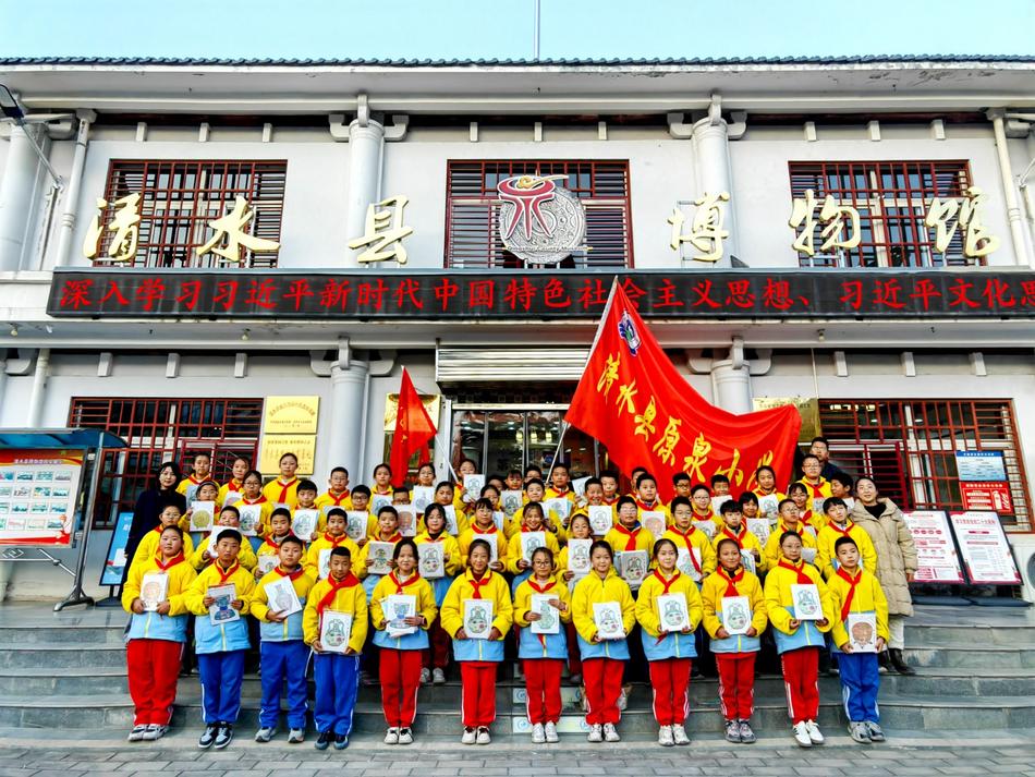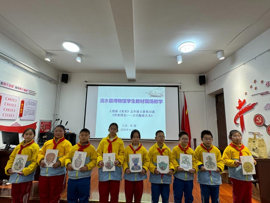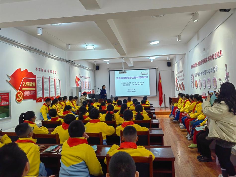 新天水讯 据清水县融媒体中心消息 近日,为深化五年级美术课程上册第20课《珍爱国宝——古代陶瓷艺术》的教学实效,让学生近距离触摸历史温度,与文明对话、与美学相遇,清水县博物馆邀请原泉小学六十余名师生,开展了一场沉浸式现场教学活动,让馆藏文物成为生动的美育教材。