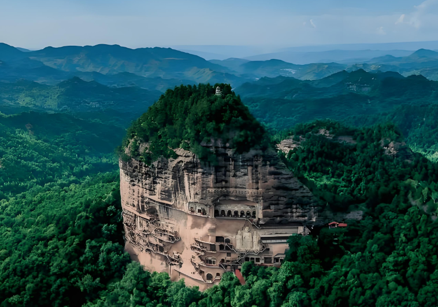 回望麦积山,暮色中的崖壁如沉睡的巨佛,那些绿树、藤蔓、灯火,还有那些守护者的身影,都已与它浑然一体。风过时,松涛与洞窟的风声应和着,分不清究竟是山的呼吸,还是人的低语。