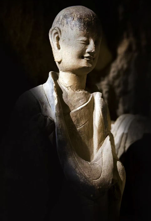 三十余年,面对着石窟内七千余尊没有雷同的雕塑,他说自己每做一身新的临摹品,就是遇见一个新的世界。在他的工作室里,我见到了那些传神的微缩精品:二十几厘米高的小沙弥、菩萨,个个丰神秀骨。最动人的是第133窟那个北魏小沙弥的复制品,嘴角那抹被称为“东方微笑”的弧度,被他完美地复刻下来。“这么小的作品,怎么把握神韵?”我问。他沉吟片刻:“要忘记自己在塑像,要觉得自己就是在微笑。”