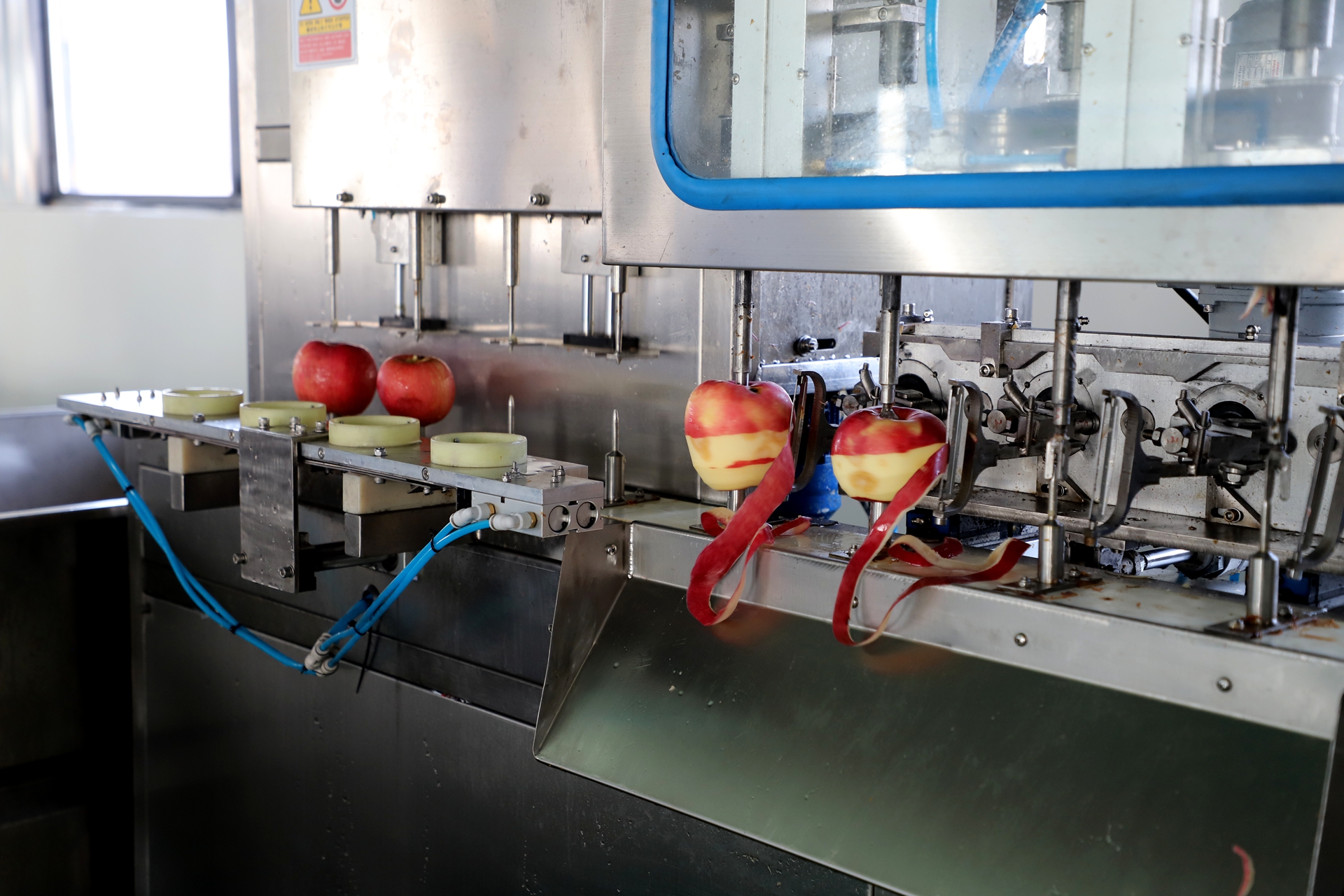 更让人欣喜的是,这条生产线不仅是“提质线”,更是“富民线”。项目采用“企业+合作社+农户”的联动模式,企业牵头整合资源,合作社负责标准化收购,农户则通过土地流转、车间务工等方式深度参与。目前,试生产阶段已吸纳20余名当地村民就业,人均月增收超2000元,在家门口实现了“挣钱顾家两不耽误”。据测算,正式投产后生产线年加工苹果600吨,可产出20万箱苹果脆产品,年产值将达1360万元,让苹果的附加值实现质的飞跃。