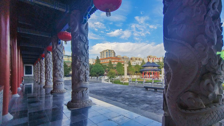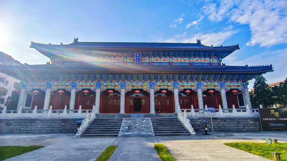 新天水讯 据麦积区融媒体中心消息 冬日晴空下,麦积区龙园博物馆更显古朴与庄重。朱红廊柱沐浴着暖阳,飞檐翘角映衬蓝天,整座建筑静谧如画,仿佛一幅悠长的冬日画卷。(特约记者 陈治平)