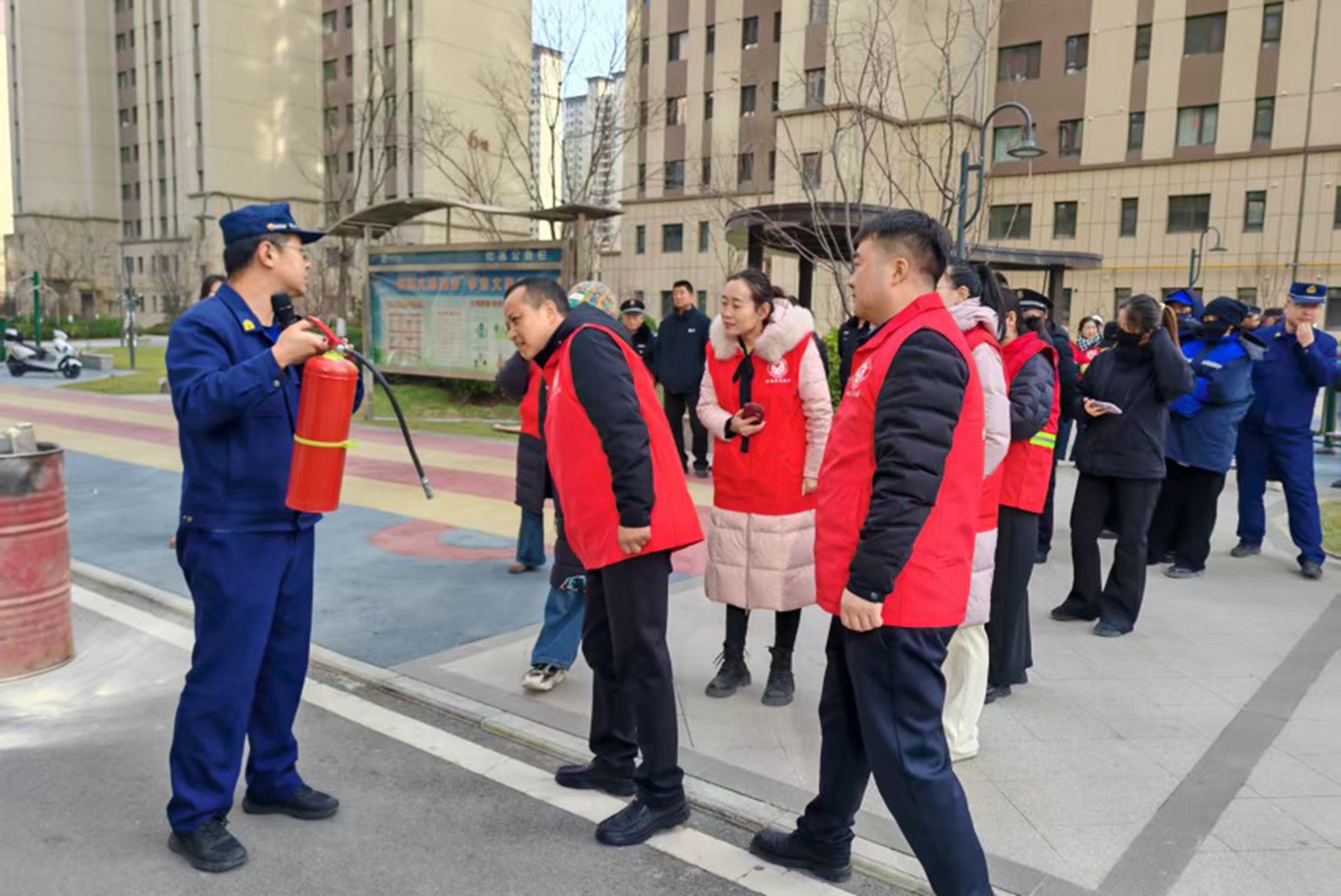 活动伊始,消防救援人员以“理论宣讲+案例警示”形式开启安全课堂。结合高层住宅火灾蔓延速度快、逃生难度大的特点,系统讲解火灾成因、日常防火“三清三关”要点及初期火灾处置原则。针对居民高频接触的消防器材,重点聚焦二氧化碳灭火器,详细阐释其适用范围,尤其适用于液体、气体及带电设备初起火灾,并拆解“一提、二拔、三握、四压”的标准操作流程,强调使用时需保持2-3米安全距离、站在上风方向及防止冻伤等关键注意事项。