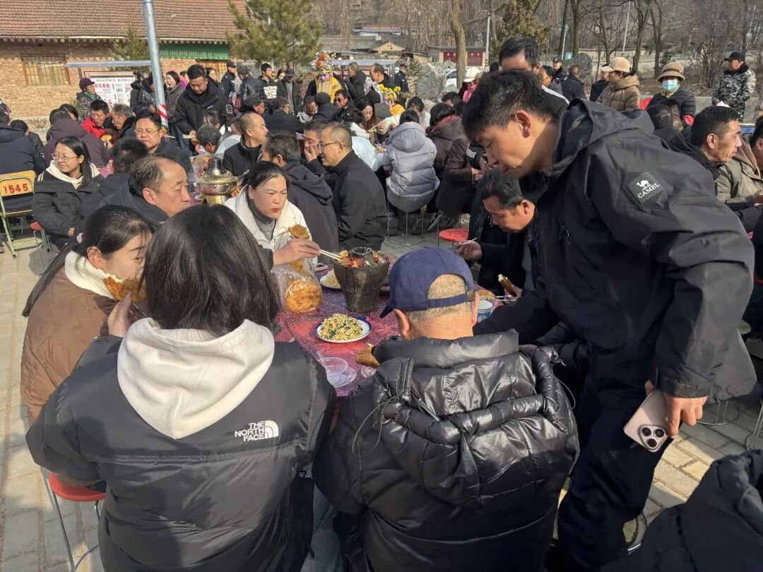 演出间隙,广场上热气腾腾的暖锅宴成了另一道风景。干部群众围炉而坐,锅中食材翻滚,话匣子也随之打开。从谁家嫁女“零彩礼”谈到哪户庭院获评“最美”,家常闲谈间,文明乡风的种子已悄然播撒。