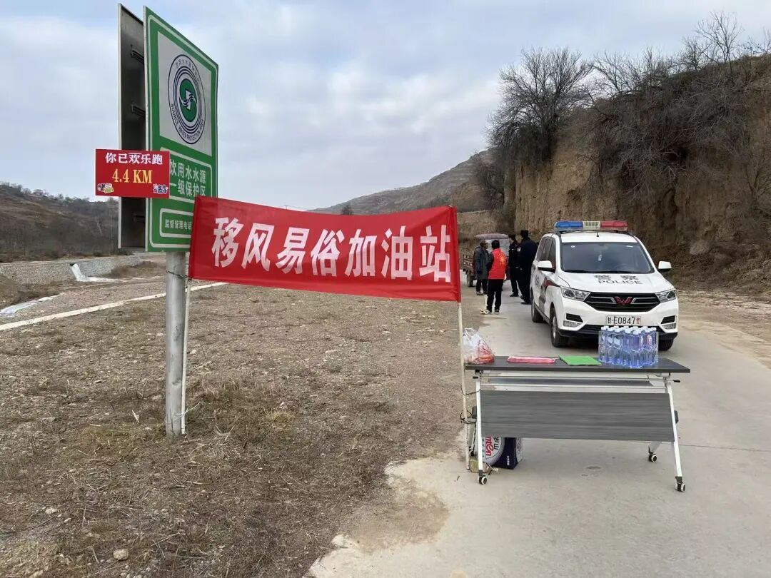 沿途不仅设有贴心的能量补给站,更创新打造了“移风易俗加油站”,不仅为参加活动人员按需供应矿泉水、饼干等物资,还发放了倡导文明婚俗和喜事新办、白事简办“七规八约”倡议书,让文明理念随奔跑一路传播,镇派出所警力全程护航巡逻,镇卫生院医疗组定点值守待命,全方位的保障让这场欢乐跑既充满活力,又安全暖心。