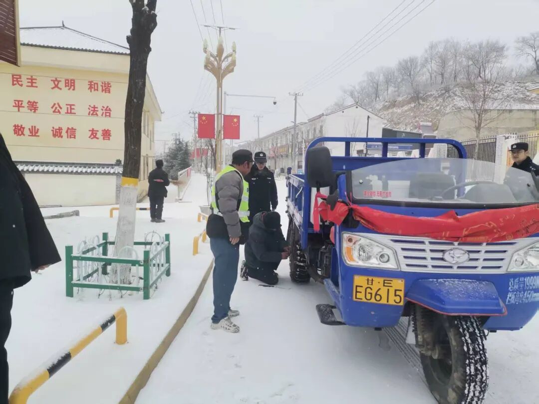 强化巡查,排查隐患守护平安。镇派出所迅速行动,增加路面警力投入,加强主干道及事故易发路段的巡逻管控和指挥疏导。民警们重点排查过往车辆的安全状况,检查防滑链配备、轮胎磨损、灯光系统等是否完好,对存在安全隐患的车辆及时提醒并督促整改。同时,随时准备为受困车辆和群众提供必要帮助,用责任与担当守护着雪天里的道路交通安全线。