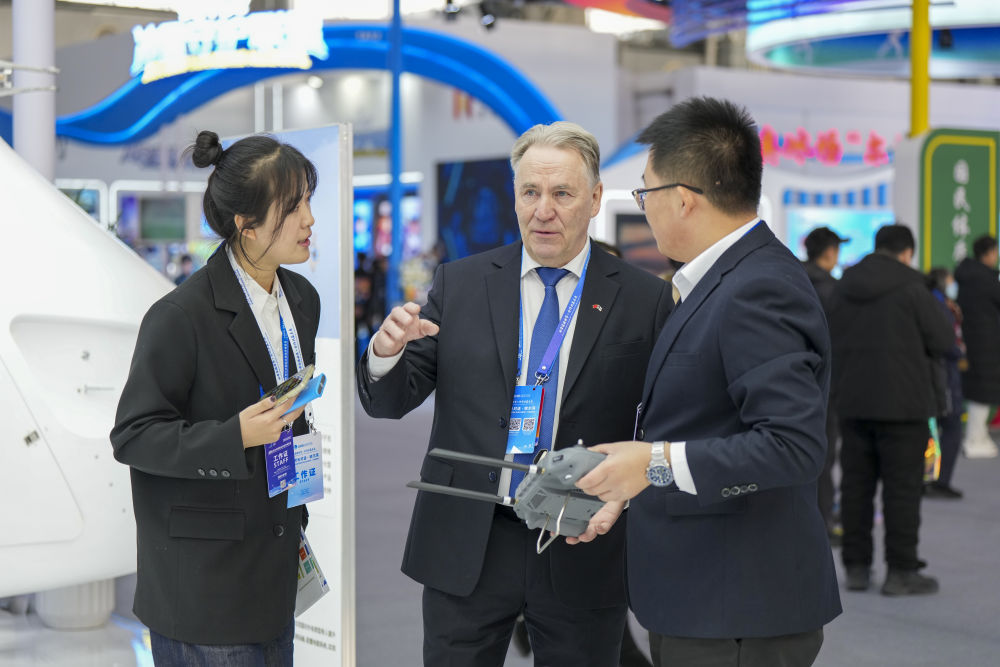 为期3天的2026哈尔滨国际冰雪经济博览会现场,全球第一台雪地摩托的发明商庞巴迪BRP的展位颇受关注。充满科技感的雪地摩托旁,不少参观者在工作人员的指导下了解设备驾驶的操作流程。