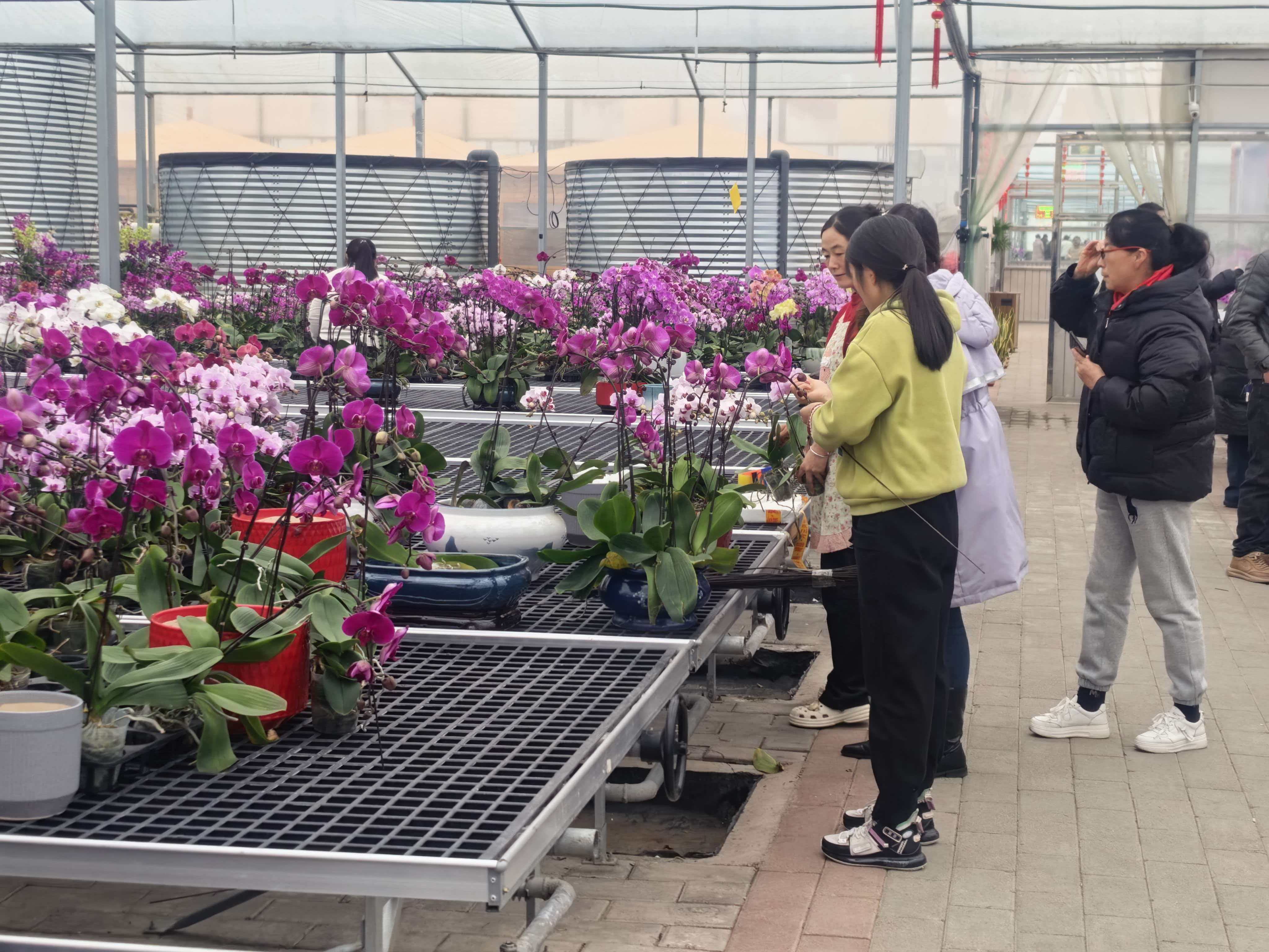 与此同时,秦州区兰花产业园也迎来了年宵花卉销售旺季,大棚内,三十余万株蝴蝶兰、石斛兰等精品花卉竞相绽放,色彩斑斓,吸引众多市民前来选购。“这的花开得还好,过来买几盆,给家里增添一点喜气。”市民李小平说。为备战新年市场,基地提前扩大种植规模并优化品种,秦州区农业产业发展有限公司经理张刚强介绍,今年在原有蝴蝶兰和石斛兰基础上,对春石斛品种进行了筛选升级,精选市场畅销款进行催花,并引进了君子兰、茶花等热门品种,形成多元化花卉矩阵。销售员侯爱霞表示:“买花的人非常多,每个人每天至少要组30多盆,才能满足客户的需求。”繁花似锦的产业园,正为节日市场增添浓浓春意。