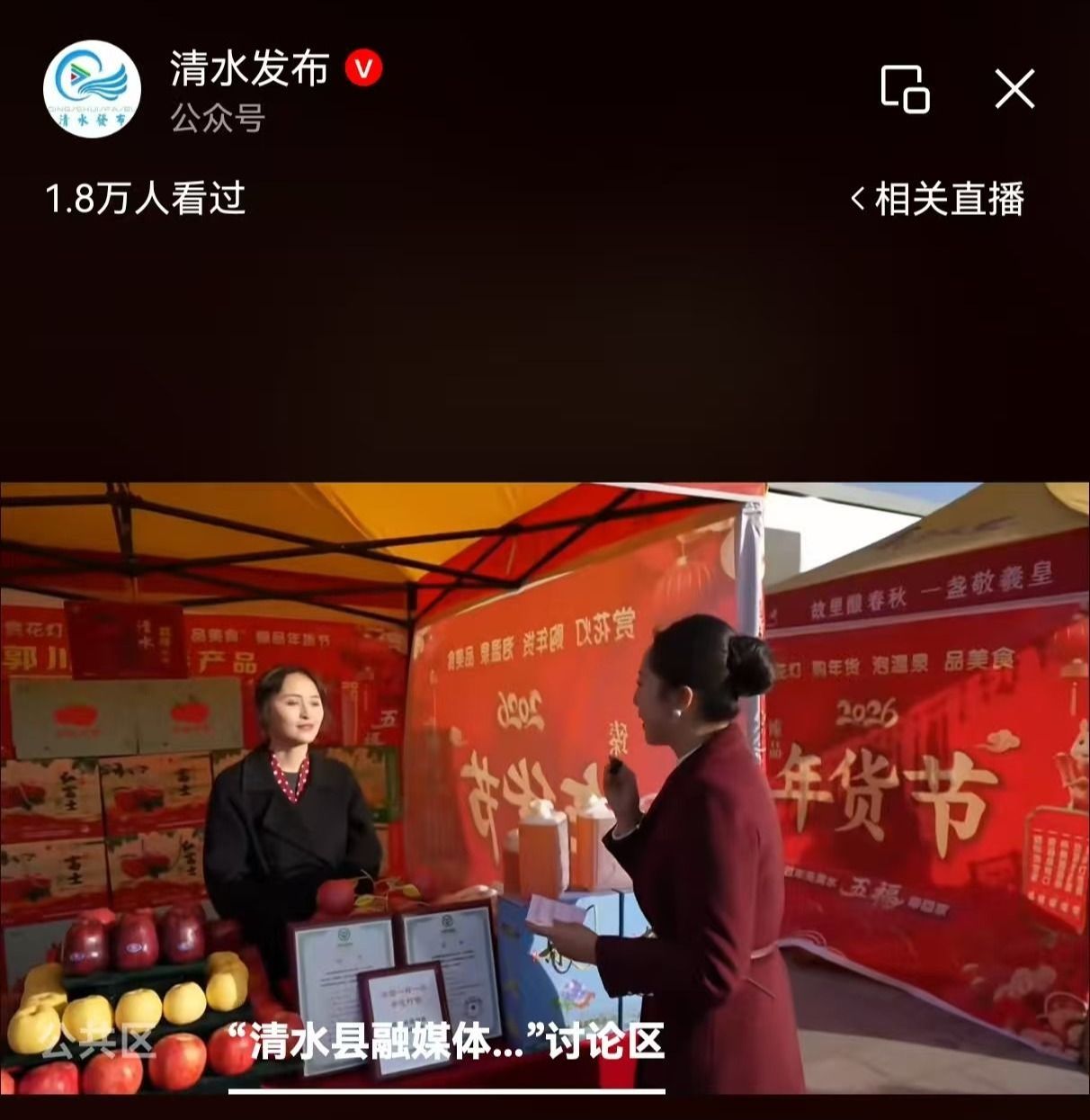 清水四季村晚能够收获全网高流量,并非偶然。本次村晚坚持“群众演、群众看、群众乐”的核心,十二个本土原创节目以“清水四季图景”为脉络,融合轩辕文化、秦早期文化与木人摔跤、清水剪纸等非遗元素,深挖乡风乡情,让节目既有文化厚度又有生活温度;同时,活动创新采用“村晚+”模式,将民俗花灯展、臻品年货节、美食品鉴等八大特色活动与文艺演出相结合,更推出“过年来清水 五福带回家”文旅推介,让直播内容兼具观赏性与实用性,满足观众多元需求。此外,清水县“村晚”示范展示活动入选全国南北小年“村晚”接力直播,为清水搭建了更广阔的传播渠道,大幅提升了活动的影响力。