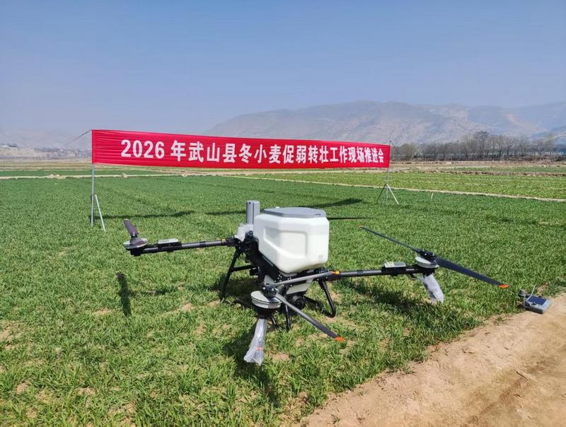抢抓冬小麦返青关键期,武山县桦林镇全面推广植保无人机统防统治作业。联合专业企业组建飞防队伍,配备北斗导航智能无人机,实现全镇麦田施肥、病虫害防治全覆盖。无人机自主飞行、雾化均匀、作业无死角,日均可作业500亩,效率达到人工50倍,有效降低农药使用量、提升田间管理精准度。同时,依托“田垄课堂”开展现场农技指导,推动种植模式由“靠经验”向“靠科技”转变,为夏粮稳产丰收筑牢基础。