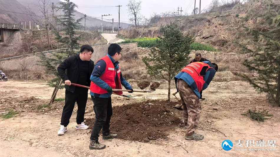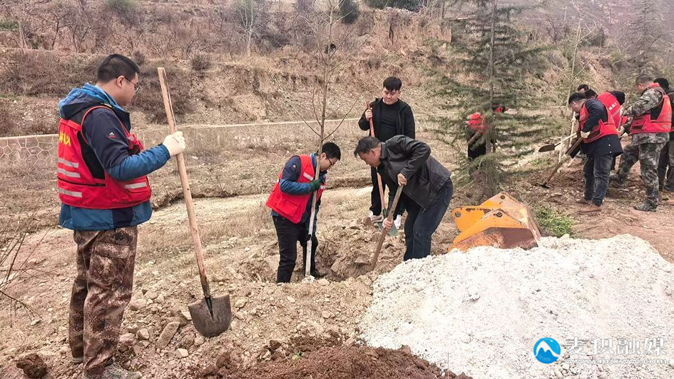 新天水讯 据麦积区融媒体中心消息 春回大地,万物复苏,植树添绿正当时。3月23日,麦积区元龙镇党委联合太碌林场党支部,组织52名干部职工齐聚元龙镇佃儿下村、渭滩村新阵地,开展以“党建联建聚合力,植树增绿践初心”为主题的义务植树活动,以实际行动践行生态文明理念,充分发挥“双林长”作用,为辖区河道沟渠及乡村新阵地增添盎然绿意。