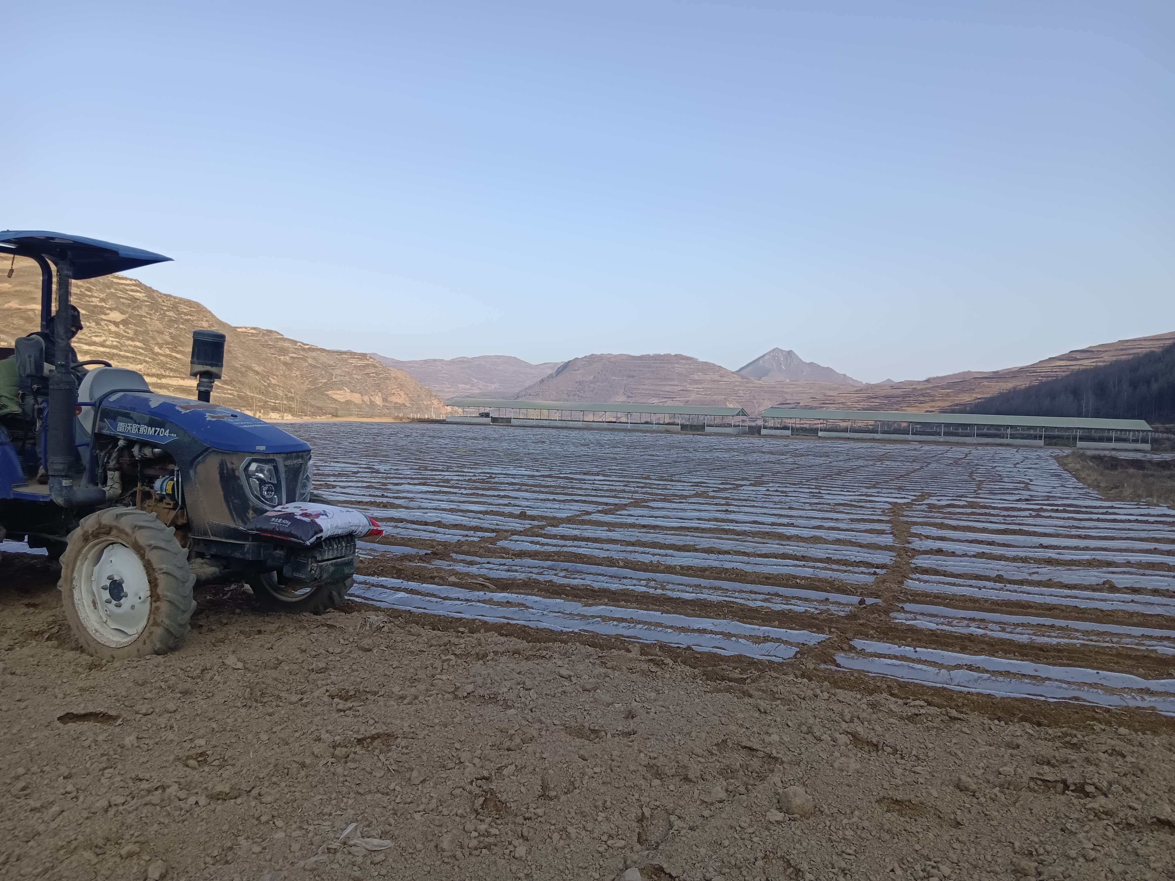 新天水讯 据武山县融媒体中心消息 近日,气温回暖,武山县沿安乡西沟村架豆示范种植点开启犁地覆膜作业,全乡春耕生产全面展开。
