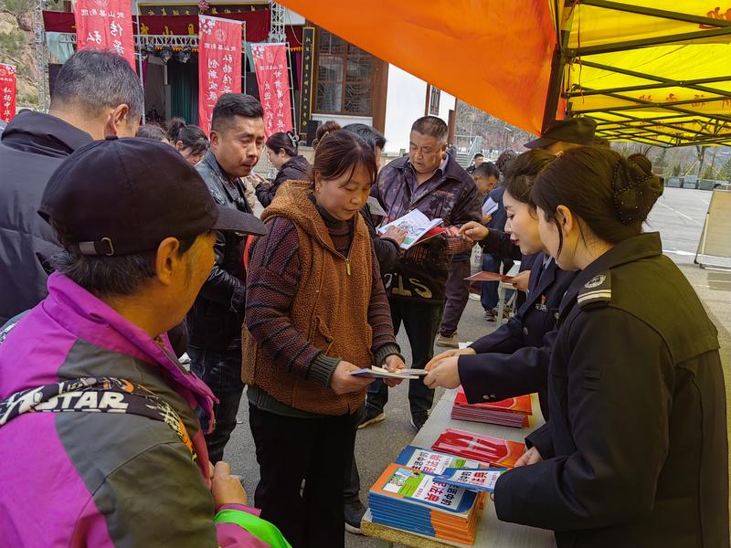 宣讲先行,政策知识“精准滴灌”。活动采取“宣讲在前、戏曲在后”的递进式流程。县司法局宣讲志愿者围绕“美好生活·民法典相伴”主题,就群众普遍关心的婚姻家庭纠纷、消费者权益保护、法律援助申请等进行“以案释法”;县应急管理局和消防救援大队结合景区特点,现场演示灭火器使用、地震避险等实用技能;文化和旅游局工作人员就文明旅游、文物保护等内容耐心讲解。一场场“微宣讲”短小精悍、直击要点,让游客在戏前等候时就能“带着知识看戏”。