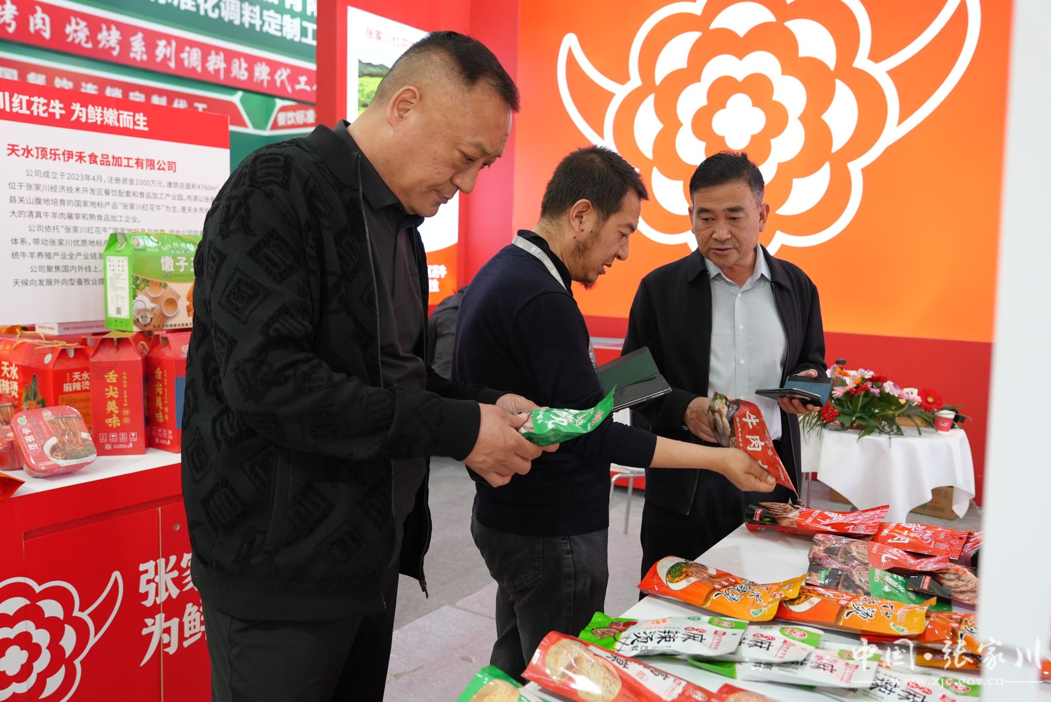 新天水讯 据张家川县融媒体中心消息 3月28日,良之隆·2026第十四届中国食材电商节在武汉国际博览中心正式拉开帷幕。这场以“以展造节,餐食界共进大聚会”为主题的全国性行业盛会,汇聚了各地优质食材企业与专业客商,搭建起餐食产业交流合作的优质平台。张家川红花牛全品类特色产品重磅参展,凭借上乘的肉质品质与丰富的特色美食,成为展会现场备受关注的特色展区,收获满满人气与好评。