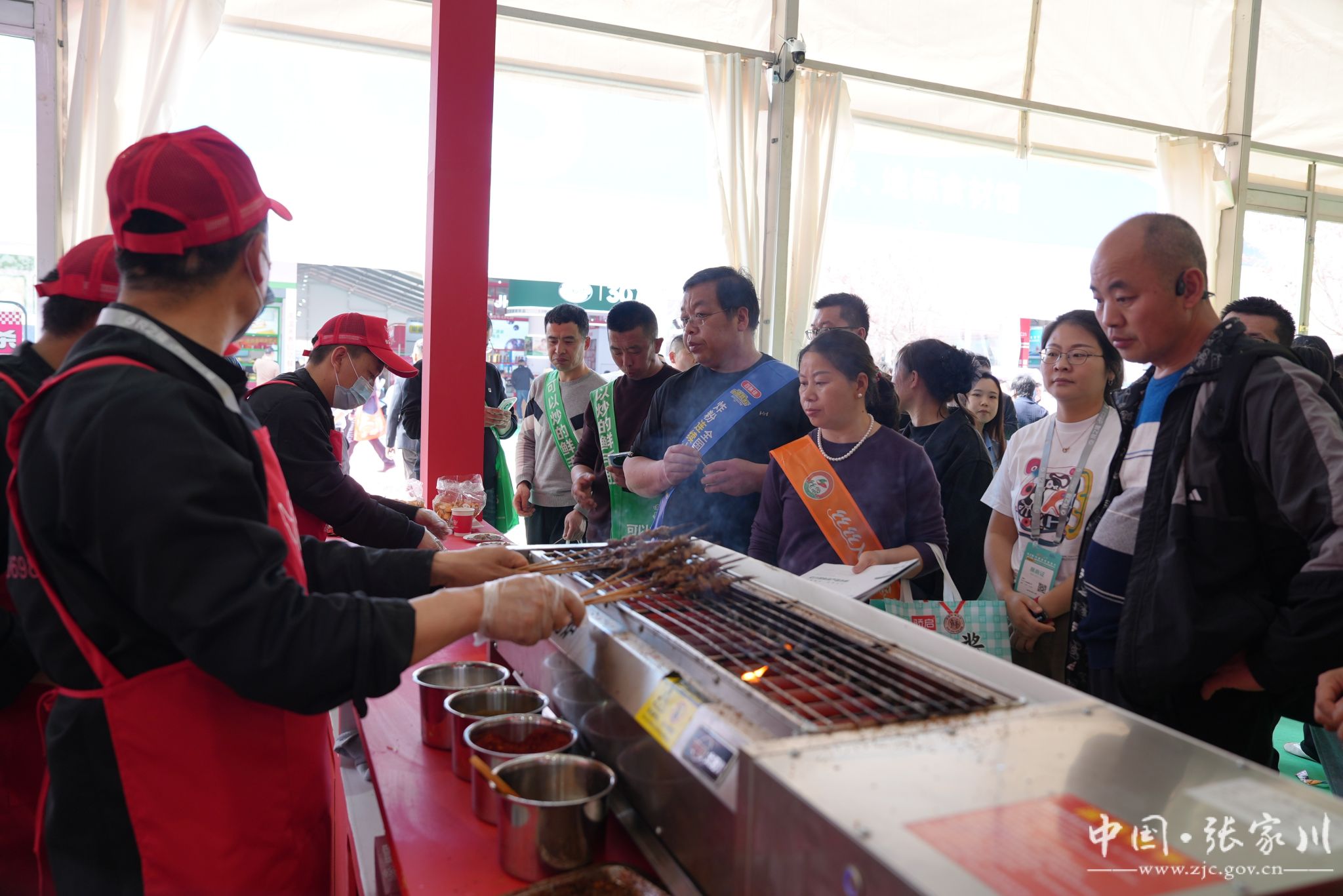 “滋滋”的烤肉声、翻滚的面汤声、沸腾的火锅声交织成一曲热闹的“美食交响曲”。烤肉架上,红花牛肉在炭火上滋滋冒油,焦香四溢;牛肉面锅里,筋道面条裹着浓郁肉香,热气腾腾;红花牛肉火锅汤底醇厚,香气直钻鼻腔。试吃区前排起长龙,全国各地的客商与观众手持餐盘,有序等候品尝。