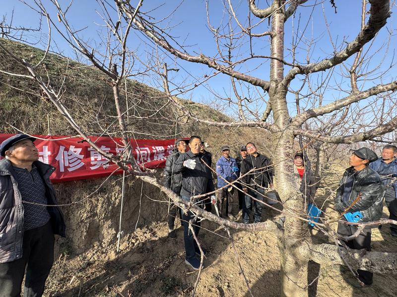 提质增效强主业,赋能乡村促振兴。在三湾村老旧果园改造点的培训会现场,工作人员通过“现场示范+手把手教学+互动答疑”,把实用技能送到田间地头,让果农们直观掌握了老旧果园改造关键技术,实时解答技术难题,确保改造一亩、成功一亩、见效一亩,让群众在产业升级中得到实实在在的收益。据悉,全镇今年老旧果园改造总面积是1322.32亩,通过统一调配的树苗,在年初老旧果园改造中已完成丰产沟开挖及肥料填埋等工作,目前已完成果园改造1300亩。在马家庄村,一条惠及四村果农、长约8.3公里的产业路正紧张施工,工人们正抢抓工期,一派热火朝天的繁忙景象。这条路涉及我镇3000亩樱桃产业的关键运输通道,为樱桃采摘、外运、销售提供坚实交通保障,有力助推特色产业发展与乡村振兴。同时,在罗玉沟,正在实施的小流域治理项目3.5公里堤防也正在建设。