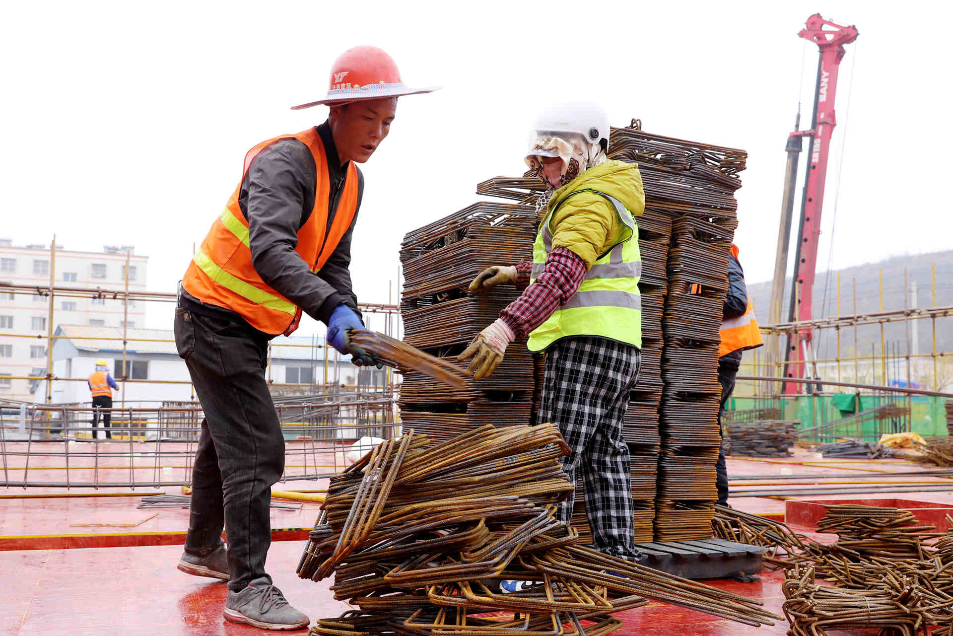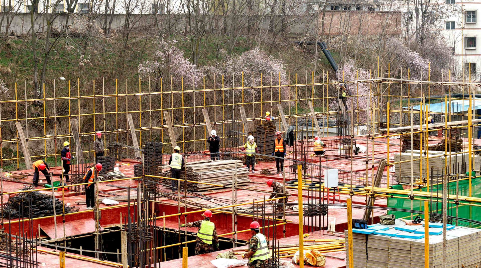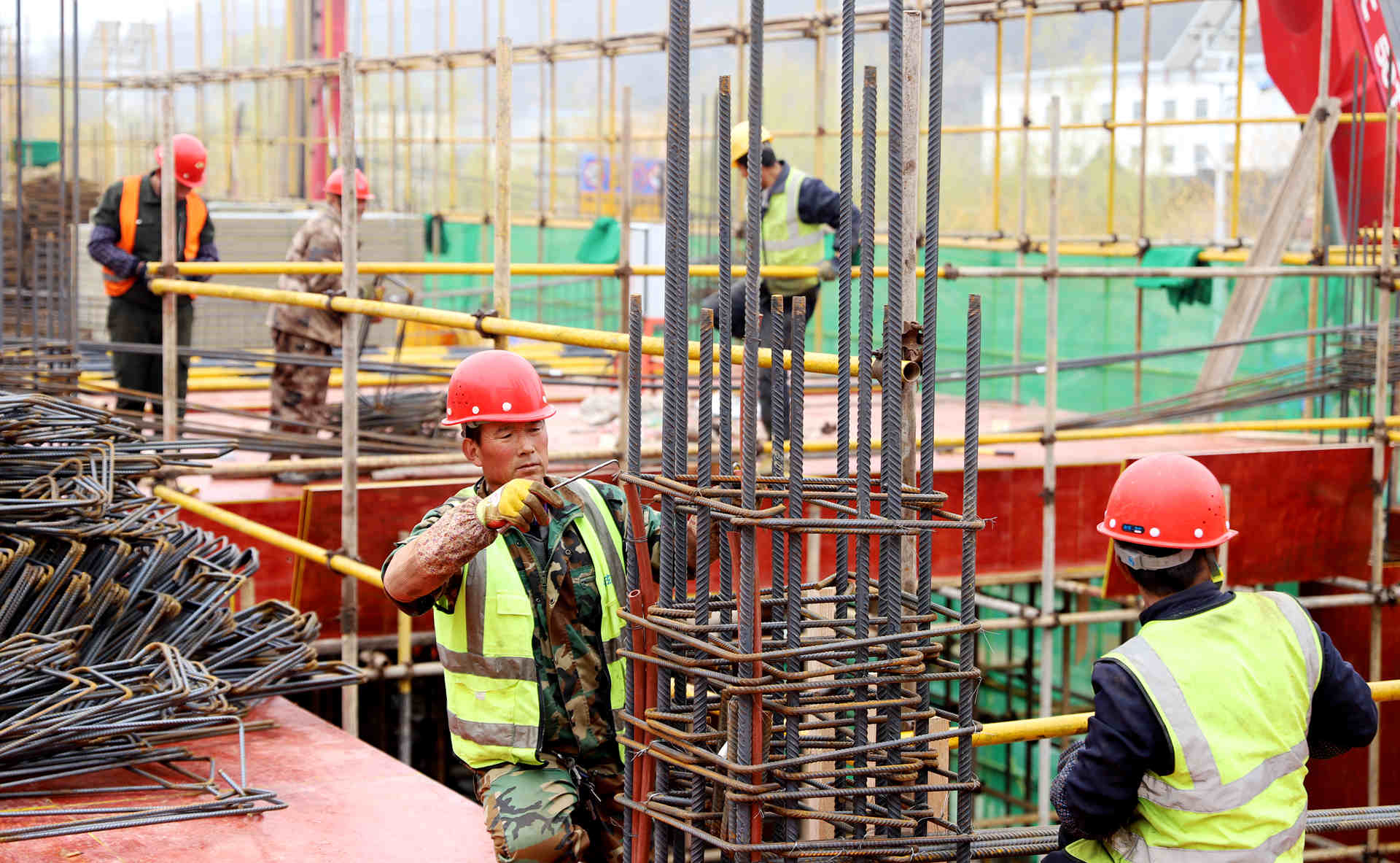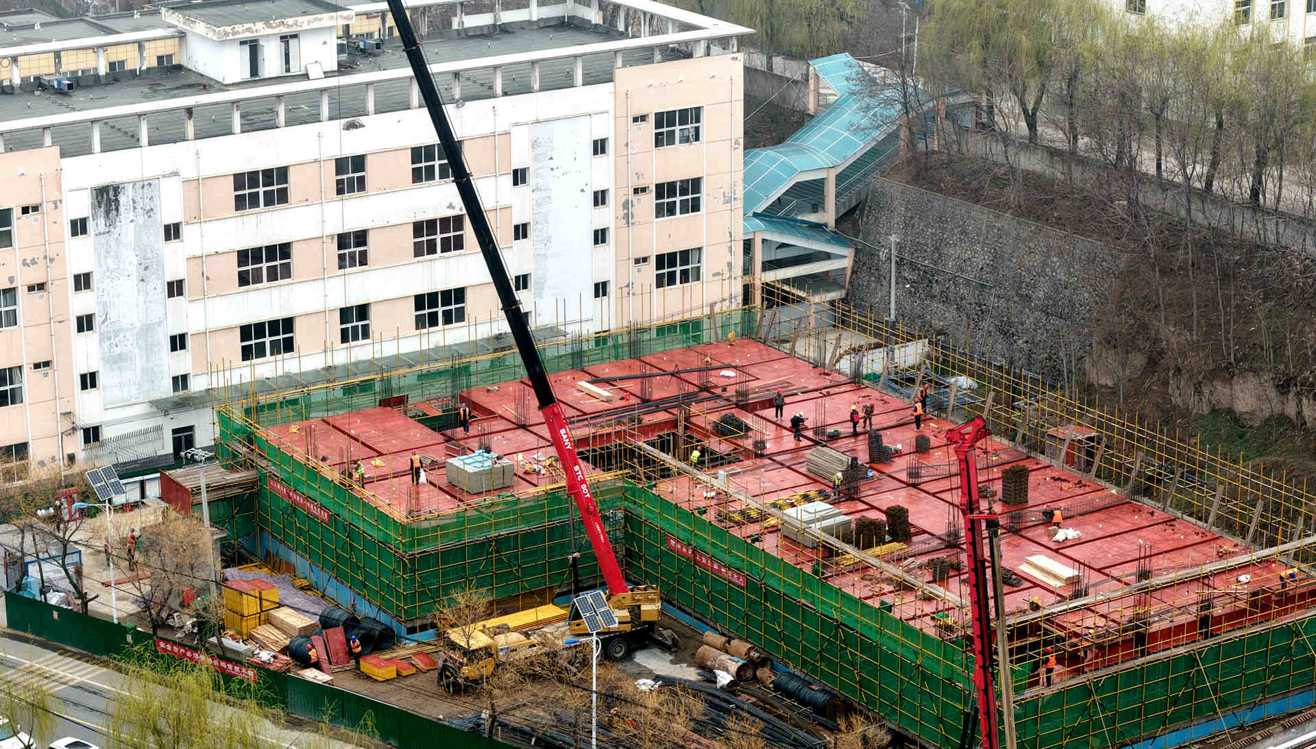 走进县一中教学综合楼项目施工现场,吊臂起落、机械轰鸣、人声鼎沸,施工人员分工明确、配合默契,绑扎钢筋、搭建支架、浇筑混凝土等工序有条不紊。