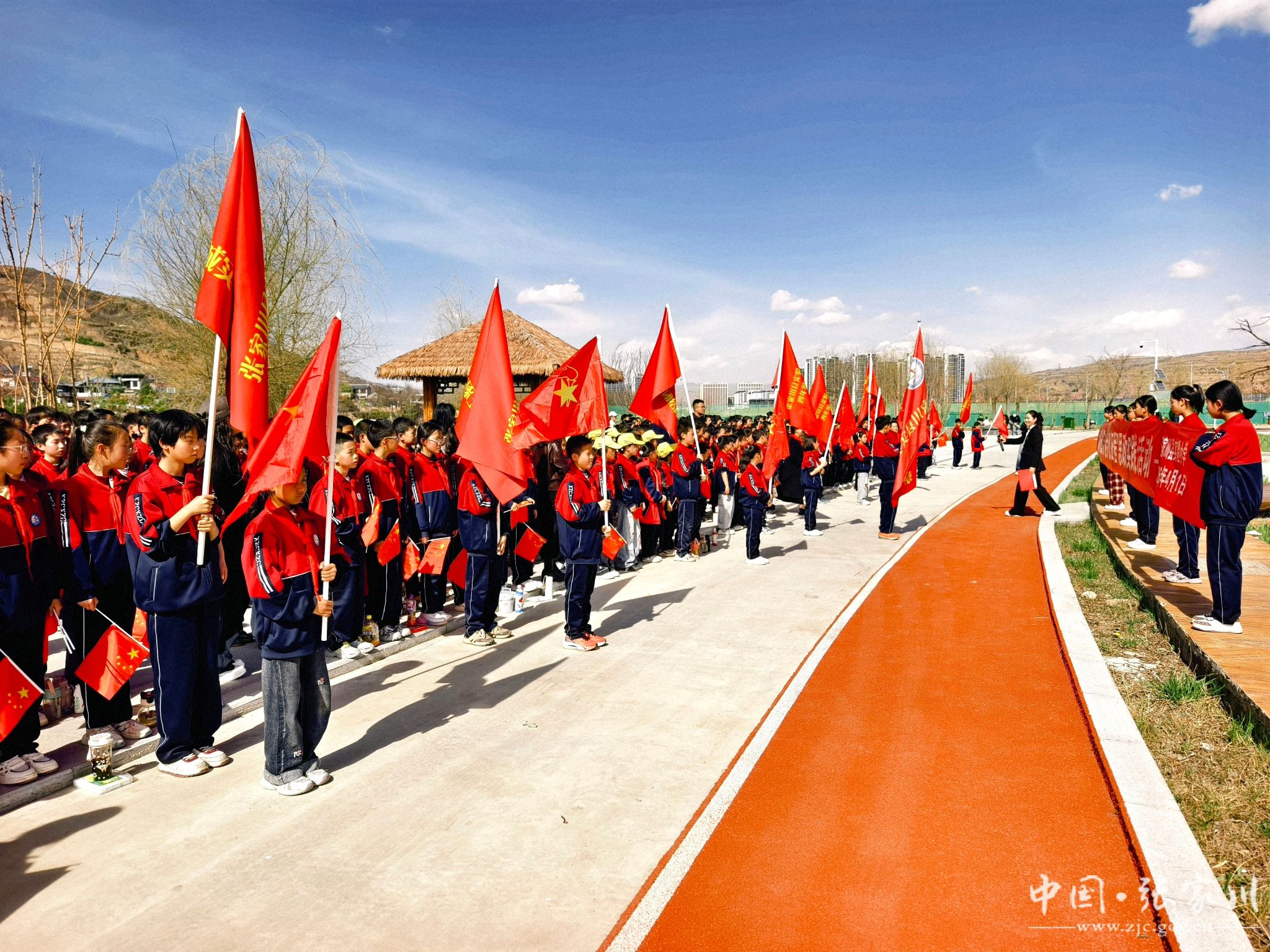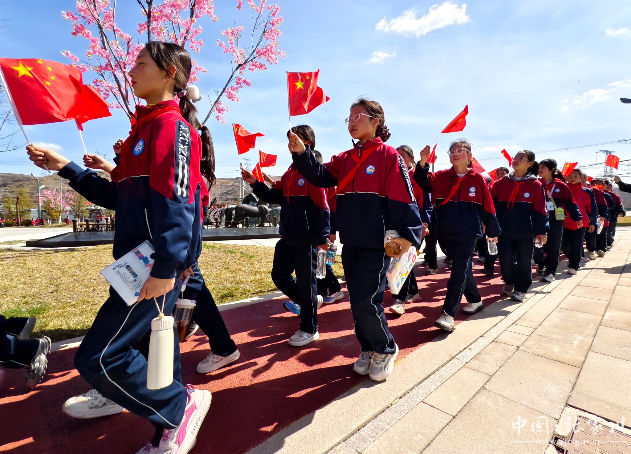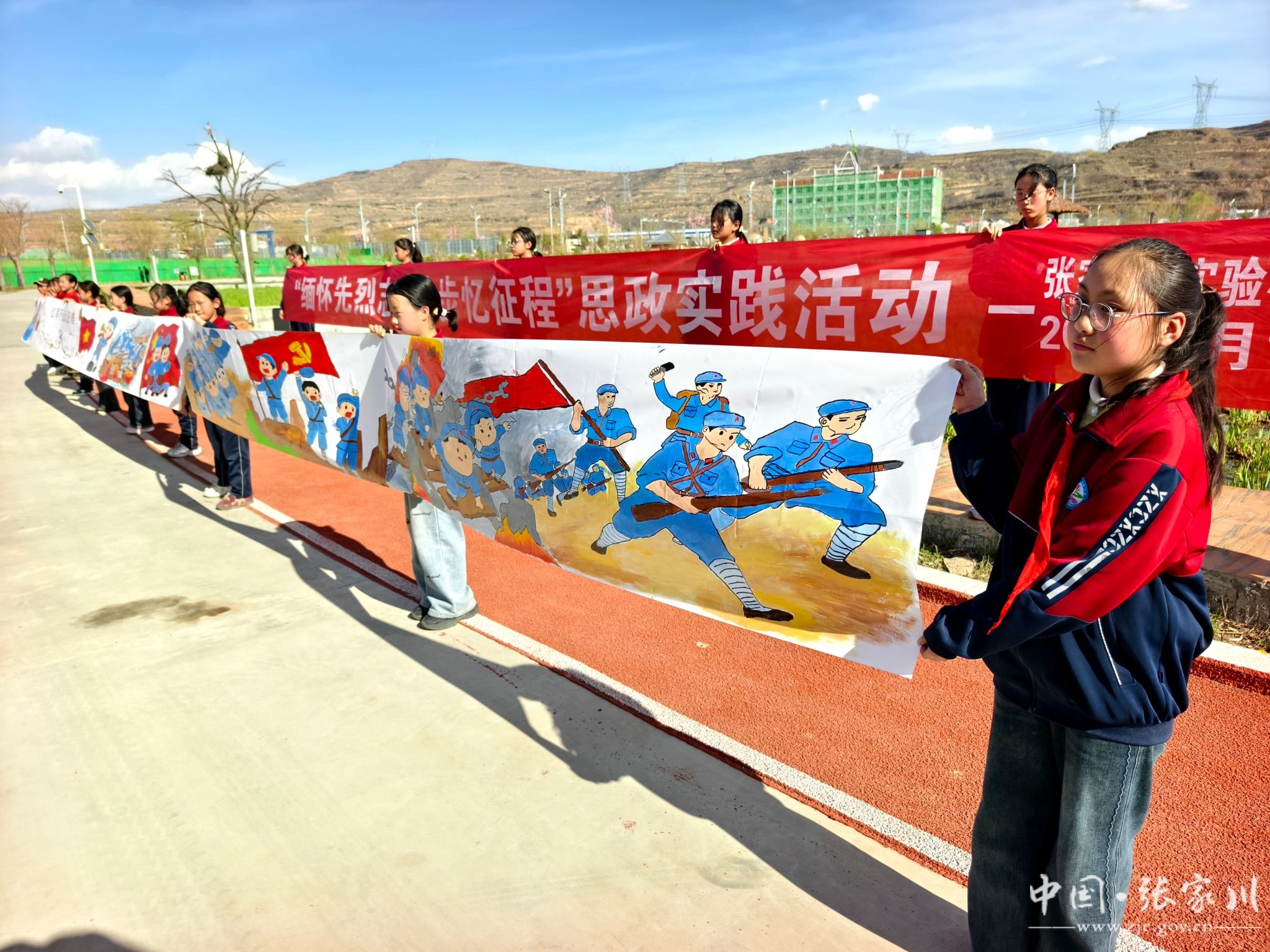 新天水讯 据张家川县融媒体中心消息 清明节前夕,张家川县实验小学组织高年级全体师生,开展“缅怀先烈志,徒步忆征程——传承红色基因,践行绿色使命”主题教育活动。300余名师生徒步5公里,通过“走一段长征路、唱一首长征组歌、画一幅长征主题画、做一件环保事、诵一篇经典诗”的五个“一”实践形式,将红色教育与生态理念深度融合,在行走的课堂中感悟革命精神,厚植爱国情怀。