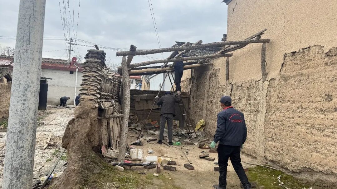 聚焦“三清”抓攻坚,全域清除环境顽疾。围绕清农村危房、清残垣断壁、清垃圾杂物重点任务,开展全域拉网式、无死角清理整治。组织保洁队伍、党员志愿者、群众力量,对村内主干道、背街小巷、房前屋后、田间地头、河道沟渠、公共场所等区域进行全面清扫,重点清理积存生活垃圾、建筑垃圾、农业生产废弃物、枯枝杂草等,彻底根除卫生死角。针对农户房前屋后柴草乱堆、杂物乱放、农具乱摆等问题,逐户引导群众规范摆放物品,打造整洁庭院;对辖区内废弃危房、残垣断壁、废弃圈舍进行全面摸排拆除,消除安全隐患,腾出公共空间。行动开展以来,累计拆除危房7间、拆除残垣断壁96米,规整乱堆乱放75处、清理各类垃圾30余处,乡村整体环境焕然一新。
