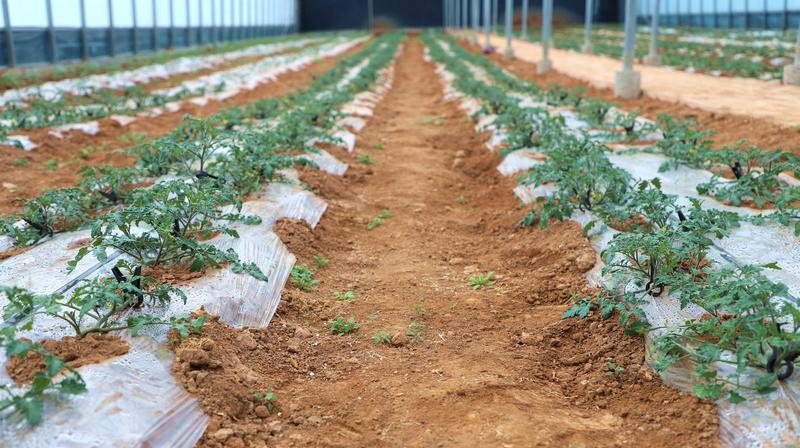 新天水讯 据武山县融媒体中心消息 仲春时节,走进武山县滩歌镇新型保暖温室生产示范小区,一座座标准化温室大棚在阳光下熠熠生辉,灌溉管网、硬化道路等配套设施一应俱全。棚内绿意盎然,豆角藤蔓攀援而上,西红柿植株已定株开花,长势喜人。