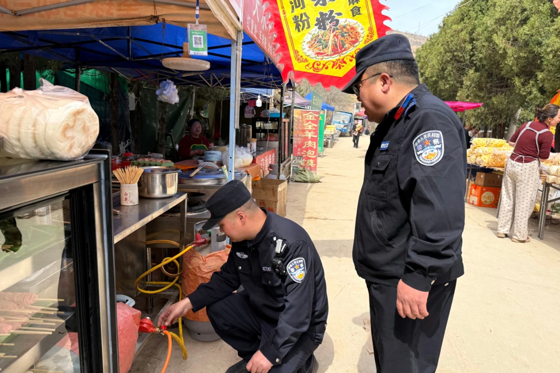 排查隐患,强化防控。派出所执勤警力加大巡逻密度和频次,对庙会现场38个临时小吃点、小商品摊位及周边区域进行全覆盖安全检查,现场督促整改用火、用电、用气等消防隐患4处。同时,密切关注人流变化,做好引导分流和秩序维护,严防拥挤踩踏等安全事故发生。