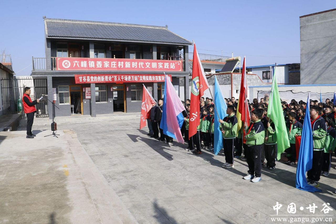 新天水讯 据甘谷县融媒体中心消息 春风润冀城,理论传新声。近日,甘谷县紧扣“百人千场进万站”理论宣讲主线,将党的创新理论、爱国精神、乡土文化与生产实践深度融合,立足三国蜀汉名将姜维故里,联动开展系列宣讲实践活动,以“理论+思政+文化+助农”的多元模式,让党的声音飞入寻常百姓家,厚植家国情怀,赋能乡村振兴,在姜维故里掀起理论宣讲与文明实践新热潮。