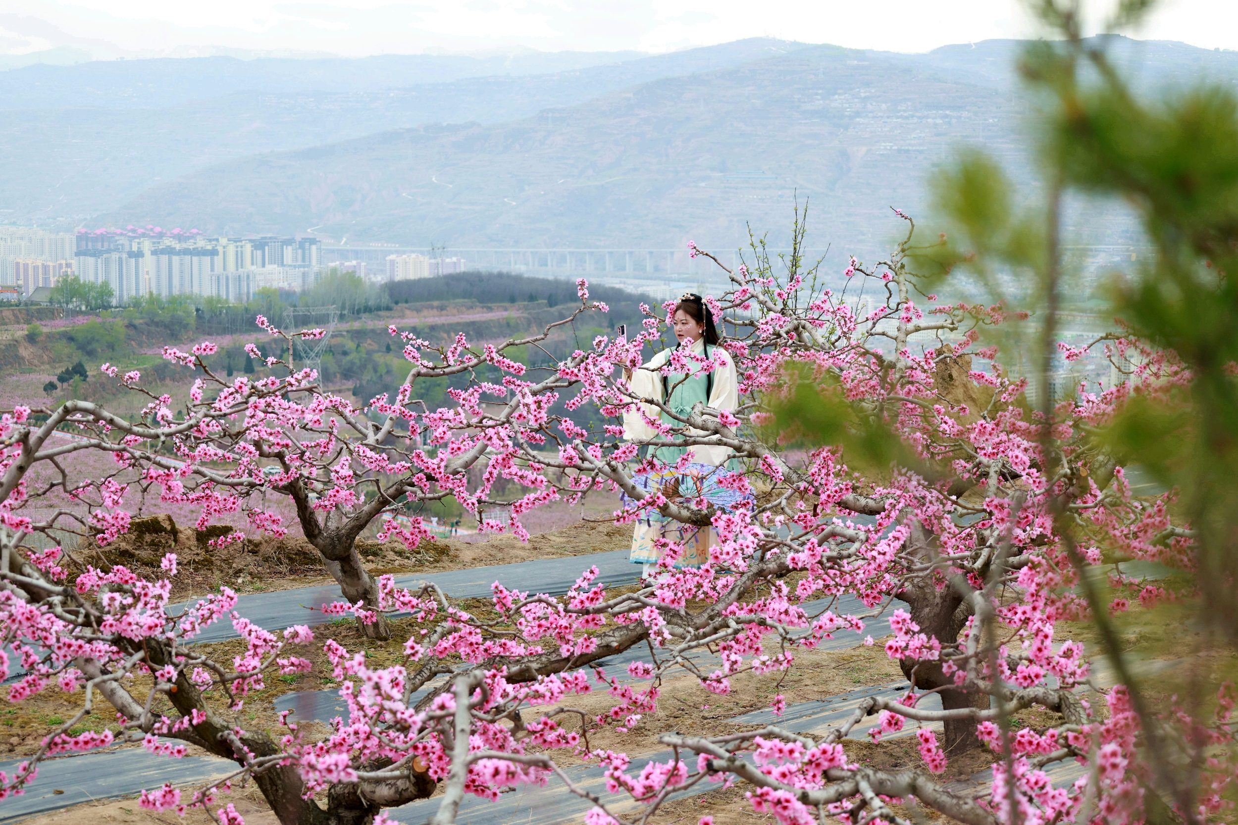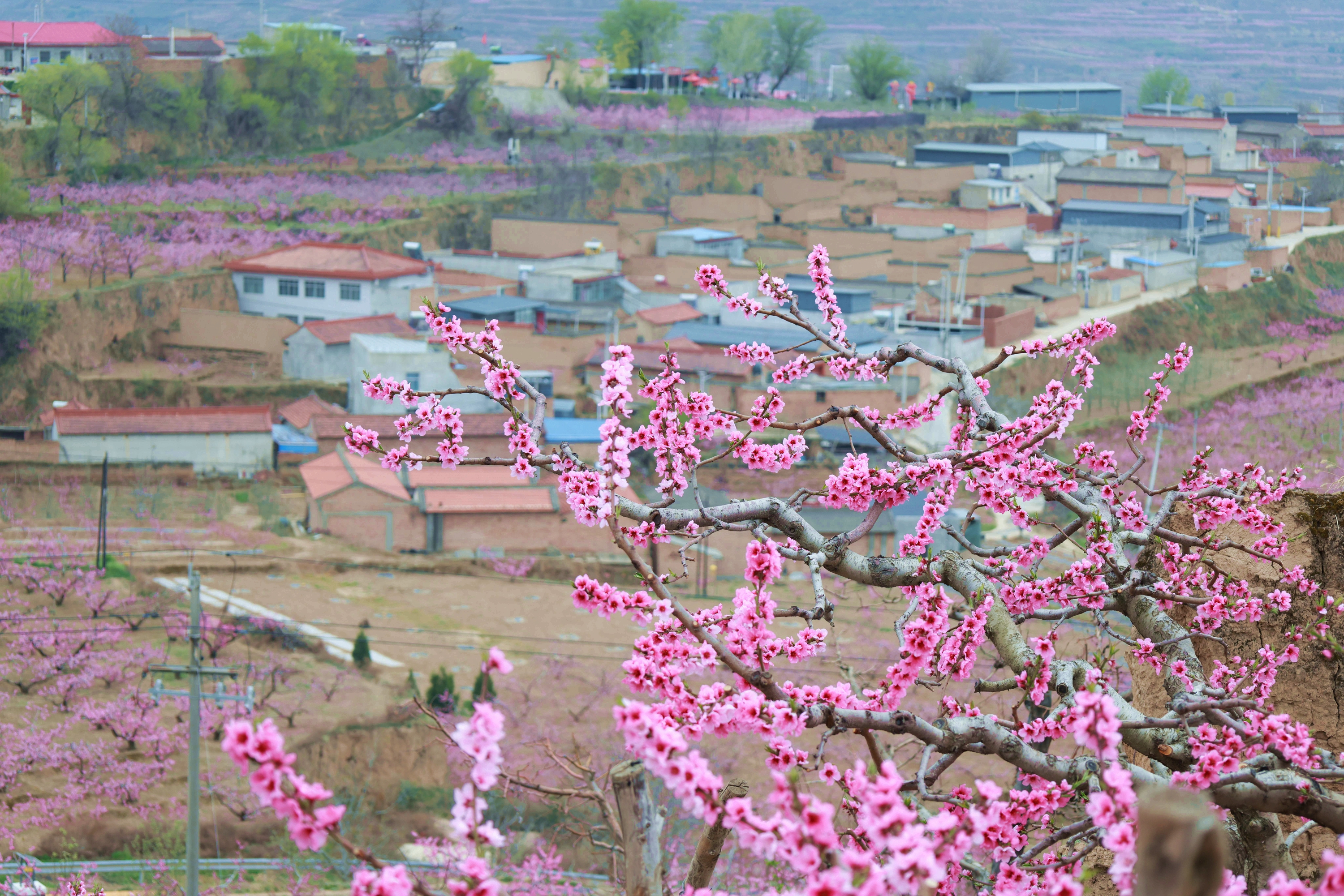 “桃之夭夭,灼灼其华”。秦安是中国著名的桃乡,每年三月,漫山遍野的桃花竞相绽放,如云似霞,将整个秦安包裹在温柔的粉色花海之中,吸引大量游客观光旅游,打卡拍照。