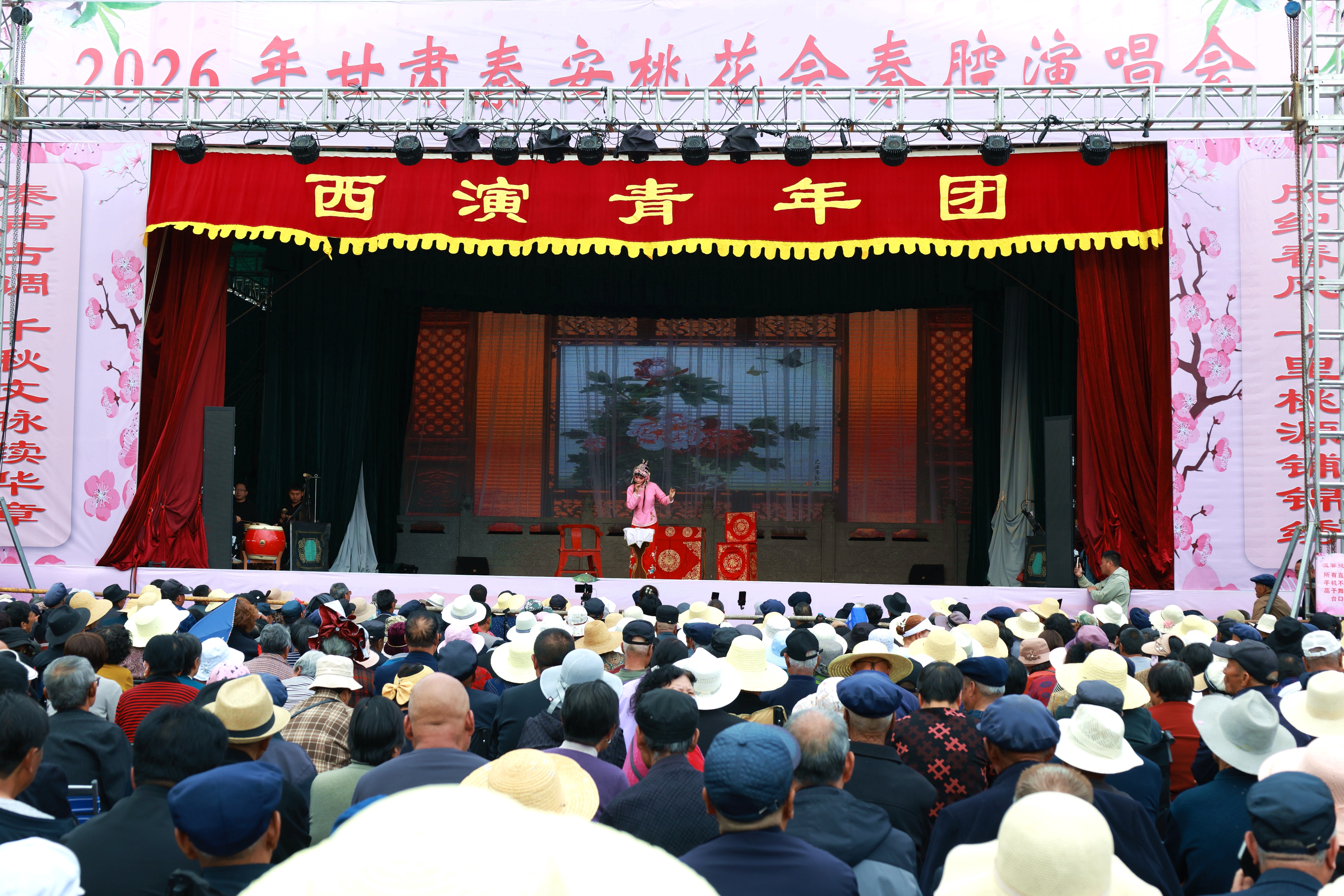 新天水讯 据武山县融媒体中心消息 4月8日上午,2026年甘肃秦安桃花会开园仪式暨全国四季村晚春季示范展示活动在秦安县刘坪镇秦洼桃花堡景区举行。万亩桃园繁花似锦,八方宾客共赴花约,共度一场浪漫的春日花海之旅。