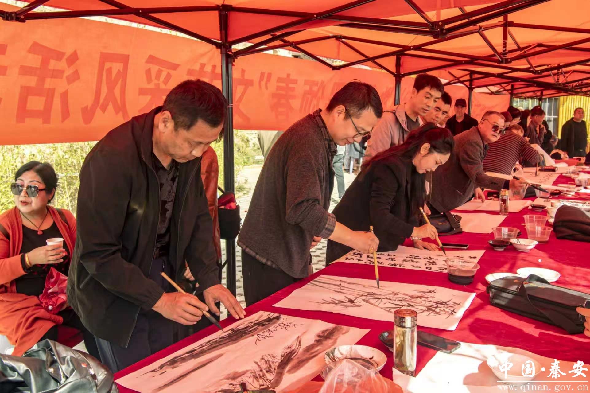活动现场,桃花竞相绽放、如云似霞,文艺工作者们漫步花间、驻足创作,以笔为媒、以墨寄情,围绕秦安桃花美景开展诗文创作、书画写生、摄影记录等系列采风活动。大家用灵动的诗句、传神的笔墨、精美的镜头,全方位展现秦安桃花的独特魅力与乡村田园的盎然生机,用文艺作品讲好秦安故事、传播秦安声音。