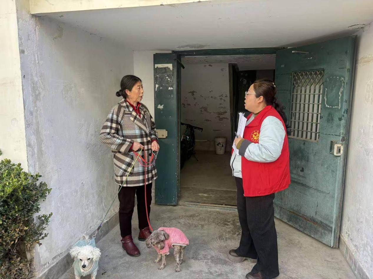 志愿者与网格员采取分片包联、入户走访的方式,对小区养宠住户进行逐一上门沟通。面对面提醒居民规范饲养、文明遛宠,现场劝导不牵绳、不清理粪便、宠物扰民等不文明行为,做到及时提醒、现场纠正。同时主动倾听居民意见,积极协调化解因养宠引发的邻里矛盾,以柔性服务推动养宠家庭主动履行管理责任。