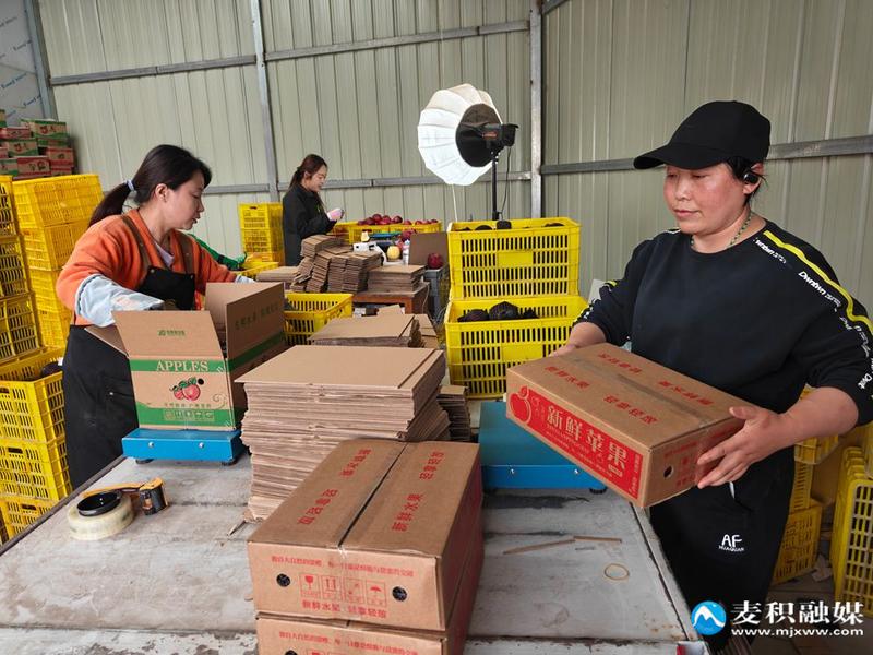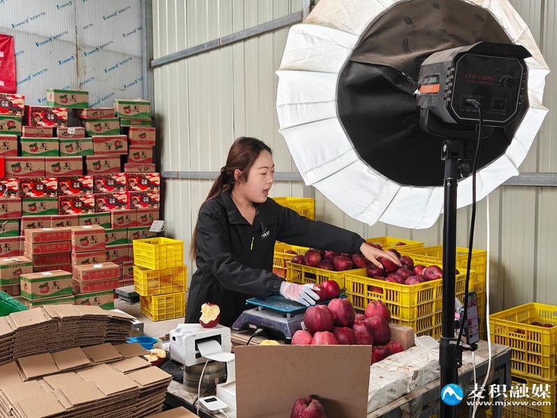 走进甘江村电商仓储配送中心,一场场农产品直播正在火热进行。主播们通过镜头推介花牛苹果、大樱桃、面皮等本地特色产品,与网友实时互动、现场展示品质优势,让优质农产品从田间地头直达消费者餐桌。直播间内订单不断刷新,后台分拣、打包、发货环节紧密衔接,呈现出一派繁忙有序的生产景象。