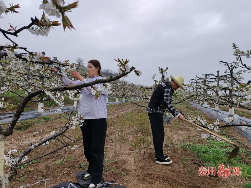 在中梁镇红卫村,沐露樱桃种植农民专业合作社的果园里樱桃花开得正盛。合作社负责人杜沐露带领着工人穿梭在果树间,有条不紊地开展疏花、修剪枝条等管护工作,用忙碌的身影勾勒出春日里的丰收希望。