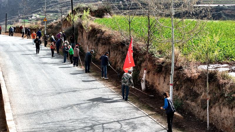 新天水讯 据武山县融媒体中心消息 一场春雨过后,武山县沿安乡处处天蓝草绿、生机盎然,乡村面貌焕然一新。在杨岷公路沿线的冯山村,一支由党员干部和群众组成的志愿服务队正忙碌在整治一线,大家分工协作,有序开展路肩杂草清理、路面平整、渠道清淤等工作,以实际行动美化乡村环境。