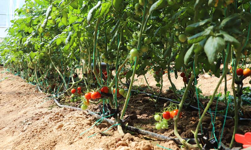 在陈门村日光温室现代设施蔬菜生产示范小区,20座温室大棚整齐排列,棚内农户正抢抓春耕时节开展田间管理,一株株玲珑小番茄长势旺盛、硕果饱满。凭借得天独厚的生长环境,这里的小番茄糖度高达13个点,品质出众。通过推广矮化密植、技术精准干预等先进种植技术,小番茄单株结果穗数从普通7-8穗提升至20多穗,园区每亩定植2600苗,单株产量3-4斤,亩产量突破一万斤,预计亩均收益可达4-5万元。