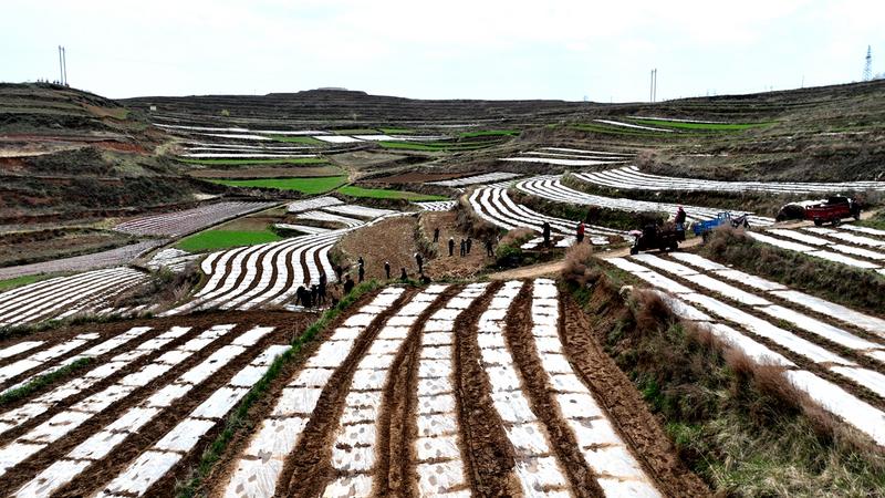 新天水讯 据武山县融媒体中心消息 春回大地,农事渐起。连日来,在武山县杨河镇中梁片区的田间地头,随处可见农民忙碌的身影。一条条银白色的地膜在阳光下熠熠生辉,如丝带般铺展在起伏的山塬之上,拉开了新一年架豆种植的序幕。