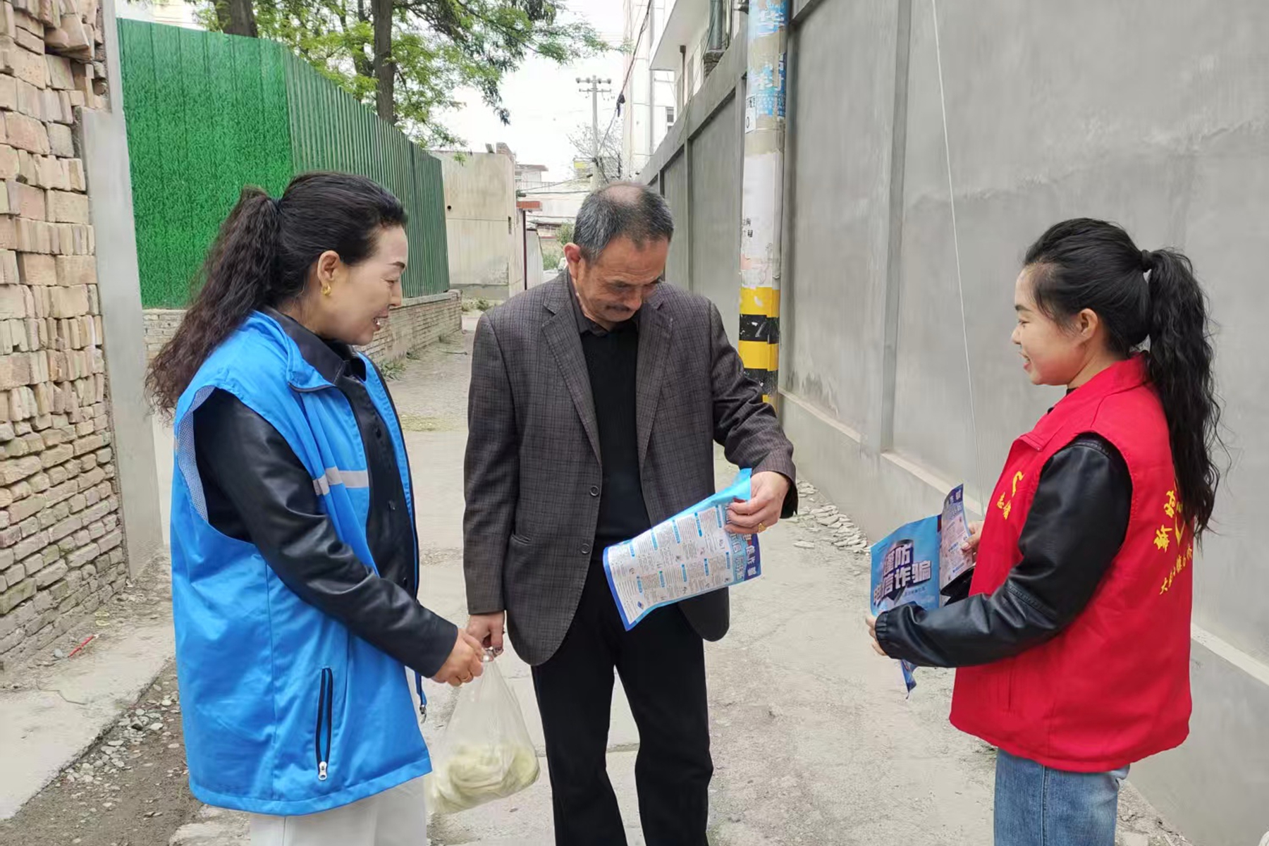 线下,志愿者和网格员走进沿街商铺和群众家中,发放精心编制的宣传手册。在发放手册的过程中,志愿者和工作人员结合高发的“刷单返利”“虚假投资理财”“冒充电商客服”等骗局,重点提醒老年人、家庭主妇等易受骗群体警惕“养老投资”“退款理赔”陷阱,叮嘱群众不要接听陌生人的电话,不要随意向他人透露个人信息。遇到可疑情况,一定要及时与家人沟通,或者拨打报警电话。