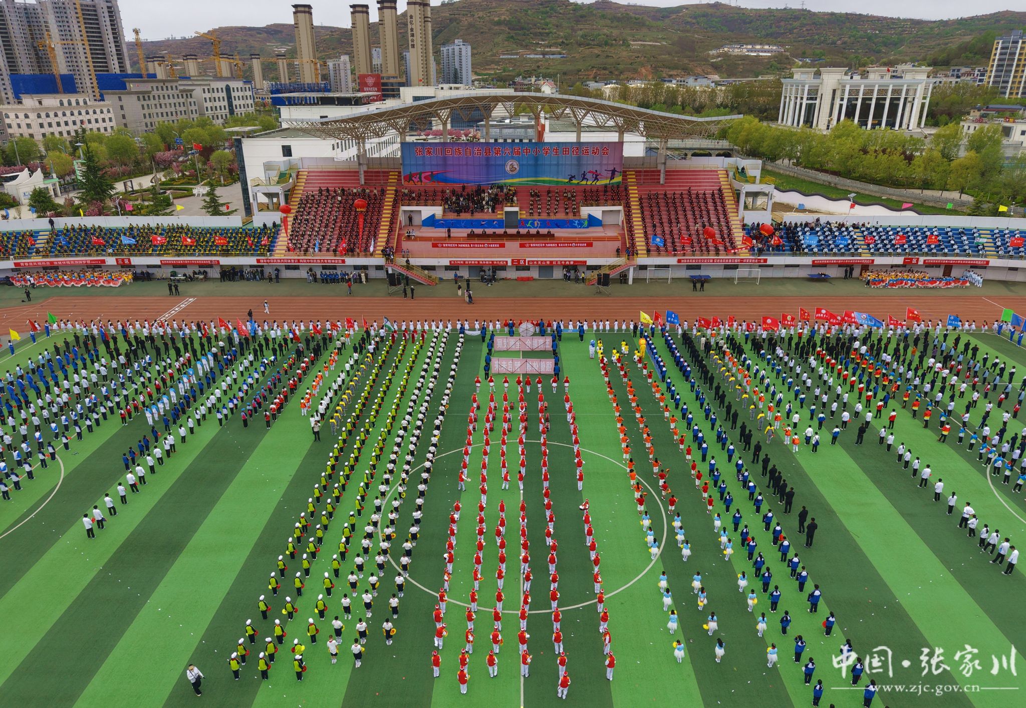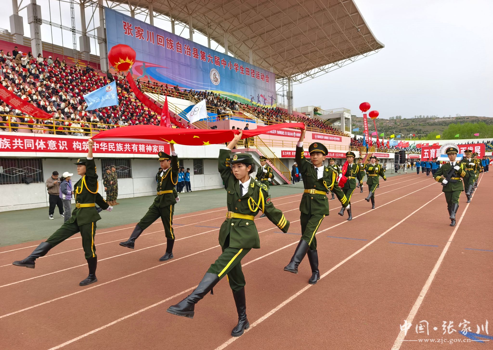 新天水讯 据张家川县融媒体中心消息 春风浩荡满目新,扬帆奋进正当时。4月27日上午,张家川县体育中心欢声雷动,全县第六届中小学生田径运动会在这里隆重开幕。来自34所学校的560名运动健儿齐聚赛场,以青春之名赴运动之约,用速度与激情展现新时代少年的昂扬风貌。