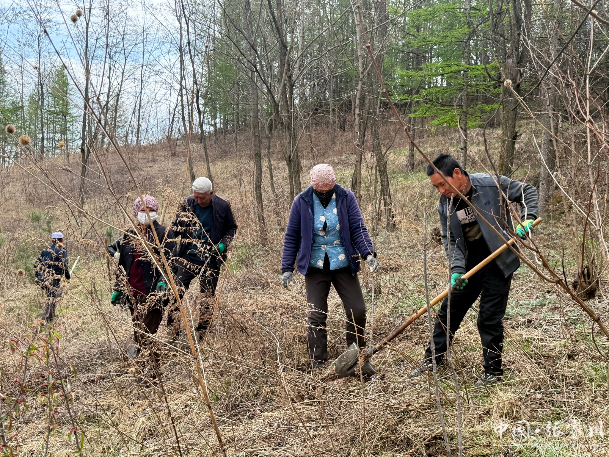 种什么、怎么种,也动了脑筋。除了云杉、侧柏球这些常绿树种,还搭配了榆叶梅、山桃、红叶李、蔷薇等开花好看的苗木,再撒上百日草、万寿菊花籽和草坪草籽、三叶草,高低搭配、四季有景,不光能固土护坡,还能让村里拍照更上相。