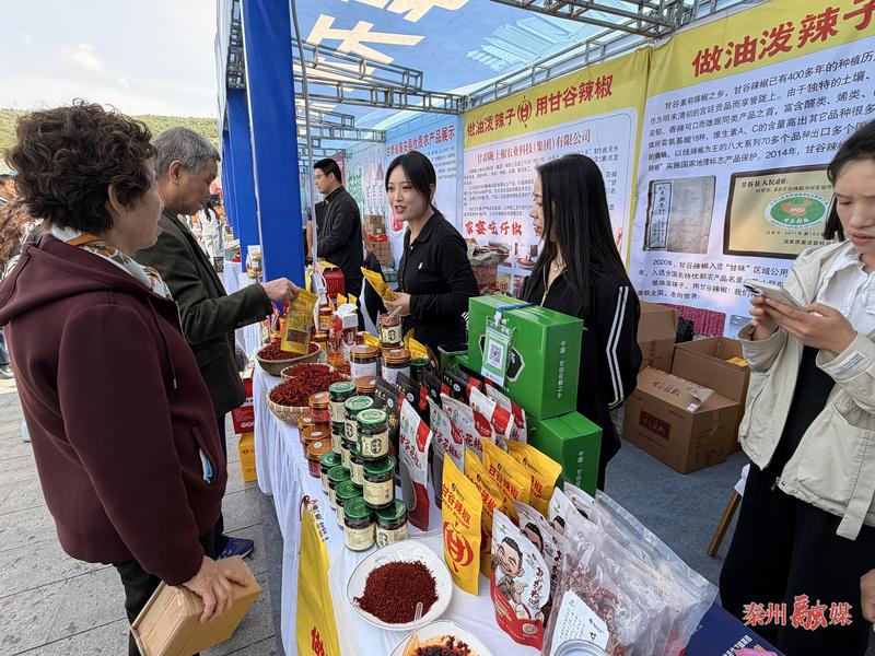 “今天带来的就是甘谷的辣椒面,辣椒面主要的特点就是香而不辣,做油泼辣子、夹馍、拌饭这些都可以。还有香豆粉,用来做花卷也是香喷喷的。”陇上椒摊位摊主黄震说。